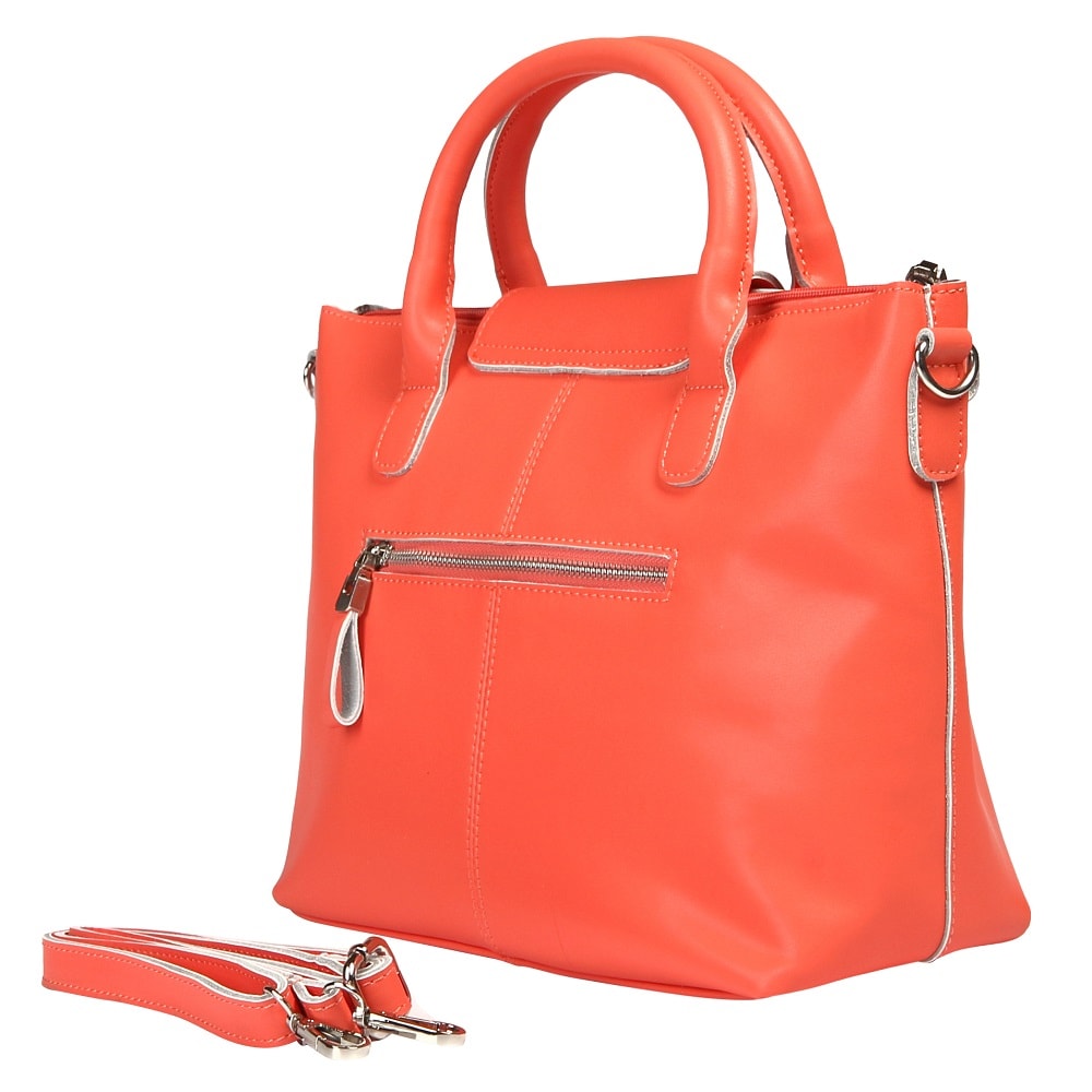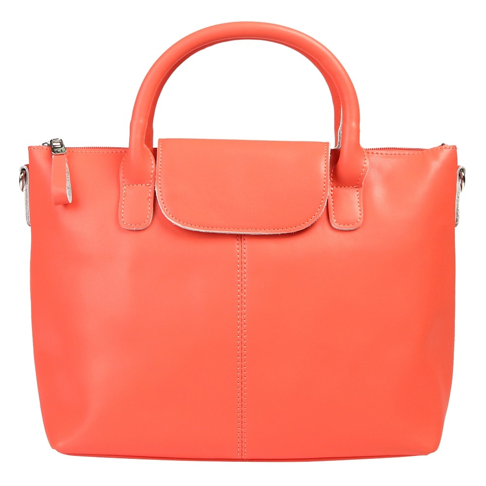 Стильная формованная модель из натуральной гладкой кожи. Под клапаном на кнопке-магните расположено основное отделение на молнии, внутри которого выделены карманы: два открытых и один потайной. На обратной стороне - дополнительная секция. Съемный плечевой ремень прилагается.