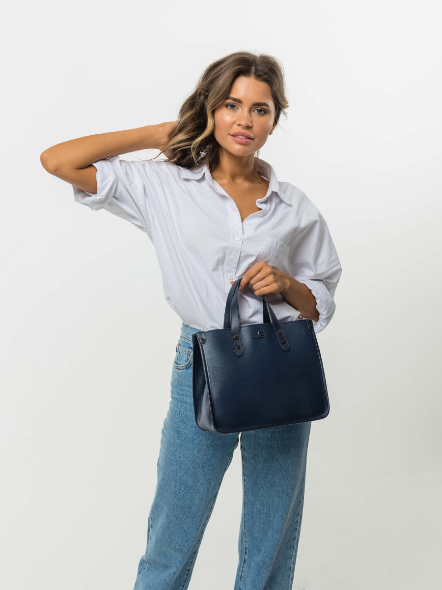 Женская сумка-тоут синяя AJ-1141-60 натуральная кожа