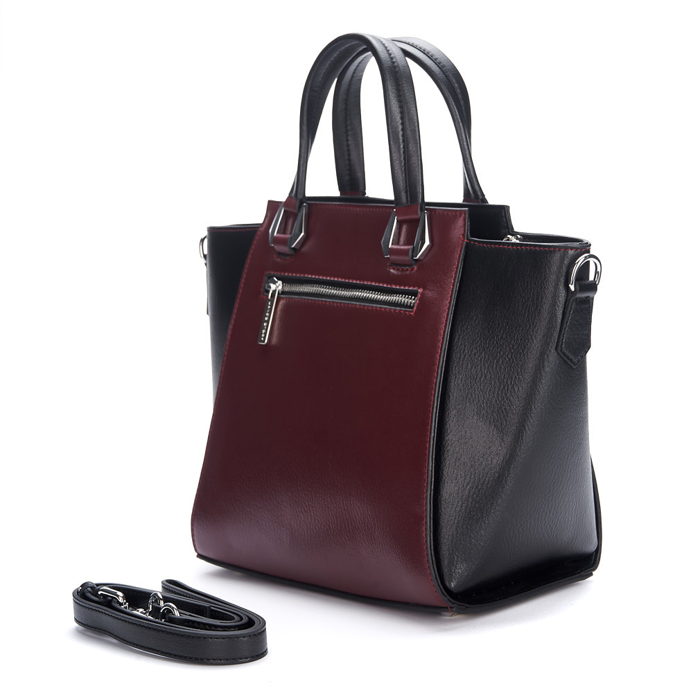 Стильная сумка из натуральной кожи,прекрасно сочетающейся с фурнитурой серебристого цвета. Одно основное отделение на молнии, внутри которого выделены карманы: два открытых и один потайной. На обратной стороне выделена дополнительная секция на молнии. Плечевой ремень прилагается.