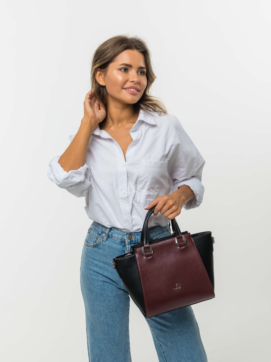 Женская сумка-тоут красная AJ-88018L-03 натуральная кожа