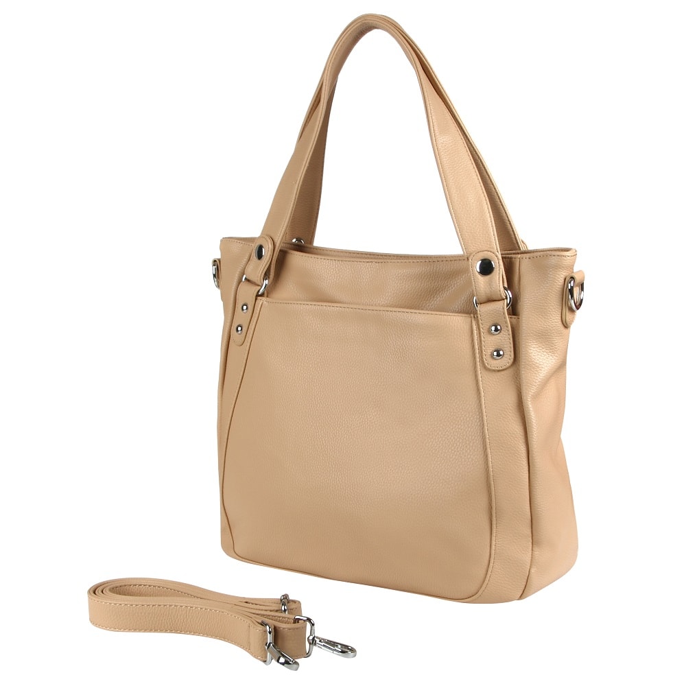Большая удобная модель, изготовленная из рельефной эко кожи, что делает ее близко схожей с натуральной , отлично сочетающейся с фурнитурой серебристого цвета. Одно основное отделение на молнии. Выделены карманы: внутри - два открытых и один потайной, на лицевой и обратной сторонах - по одному открытому. Длинный плечевой ремень прилагается.