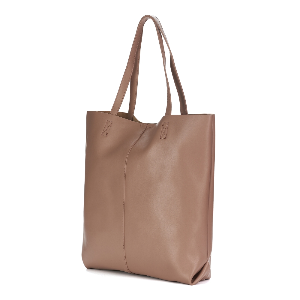 Большая удобная сумка-шоппер, изготовленная из натуральной гладкой кожи, отлично сочетающейся с фурнитурой серебристого цвета. Основное отделение на магните, внутрь которого вставляется мешочек с открытым и потайным карманом.