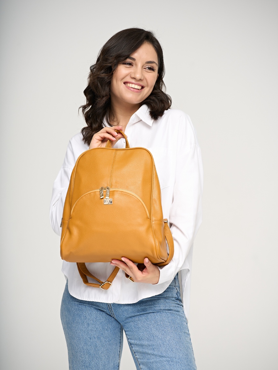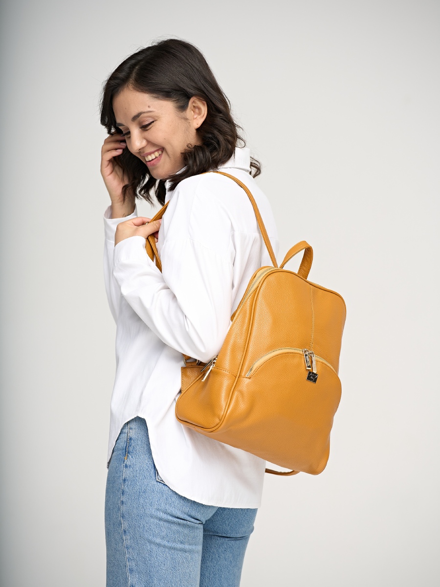 Очень красивая функциональная модель выполнена из искусственной зернистой кожи, что делает ее близко схожей с натуральной. Одно основное отделение на молнии. В этой модели выделено множество карманов: на лицевой и обратной сторонах - по одному - на молнии, внутри - как потайные, так и открытые. Лямки рюкзака регулируются по длине.