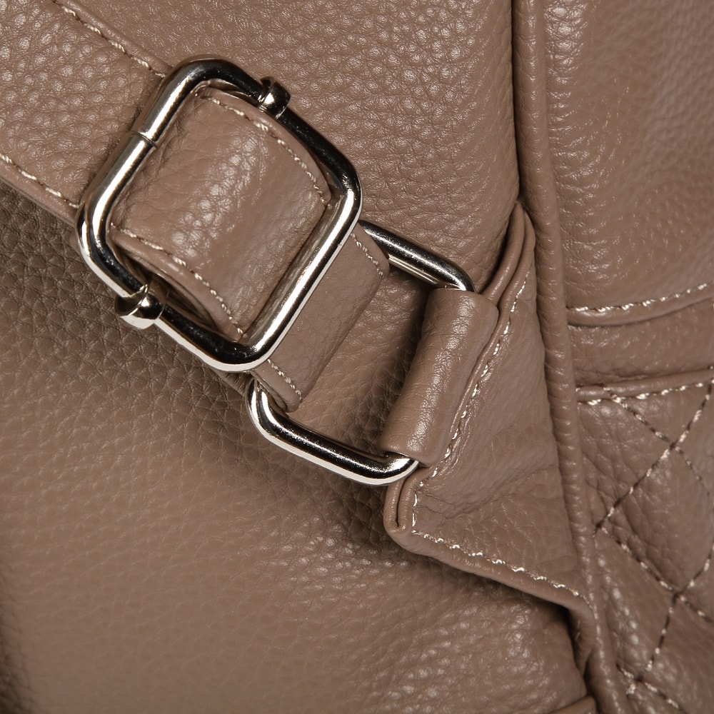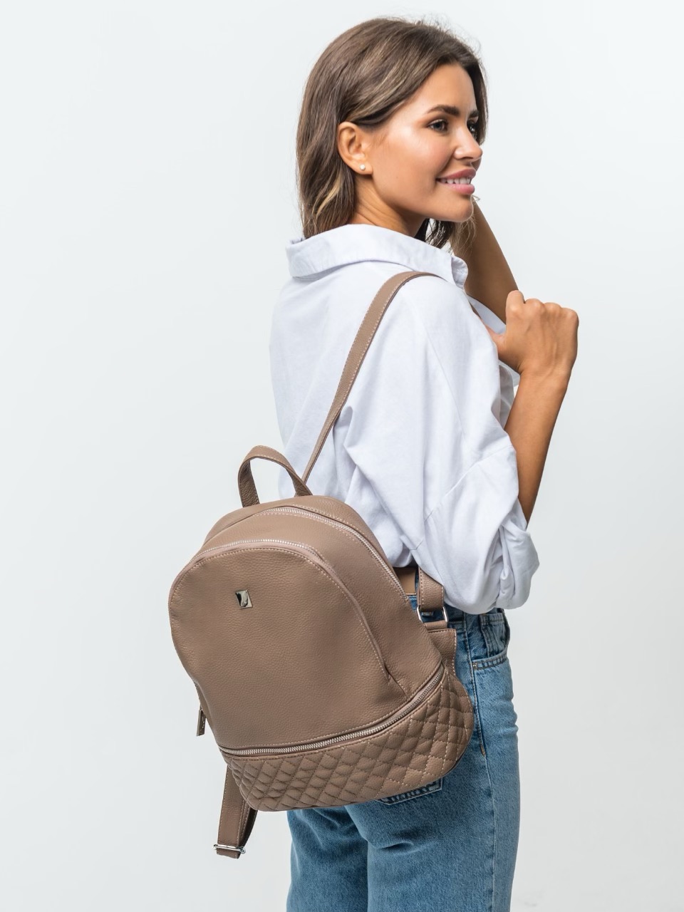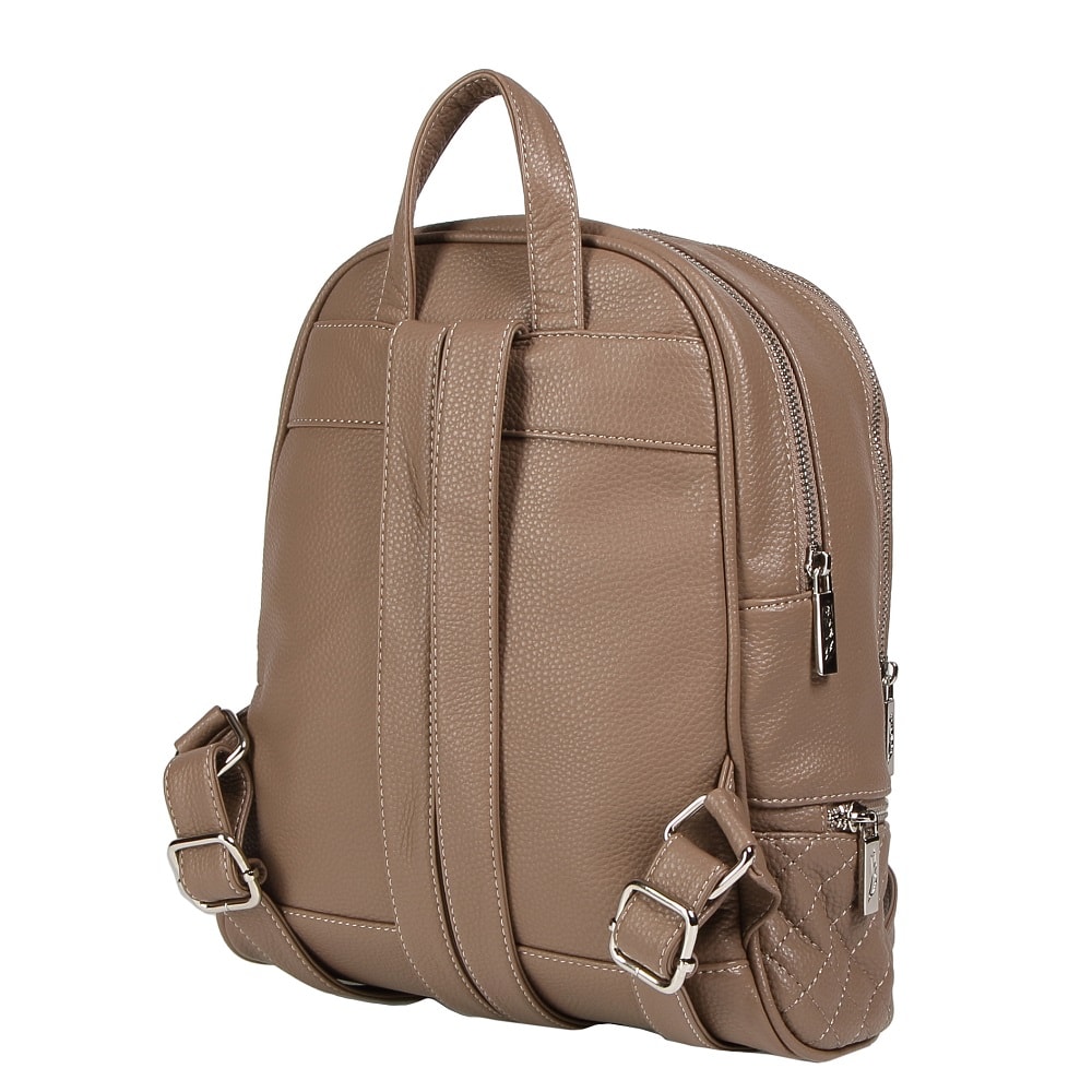 Стильный рюкзак из зернистой эко кожи с элегантной фурнитурой серебристого цвета. Два основных отделения, дополнительное - на лицевой стороне - на молнии. Выделены карманы: два открытых и один потайной. Лямки рюкзака регулируются по размеру.