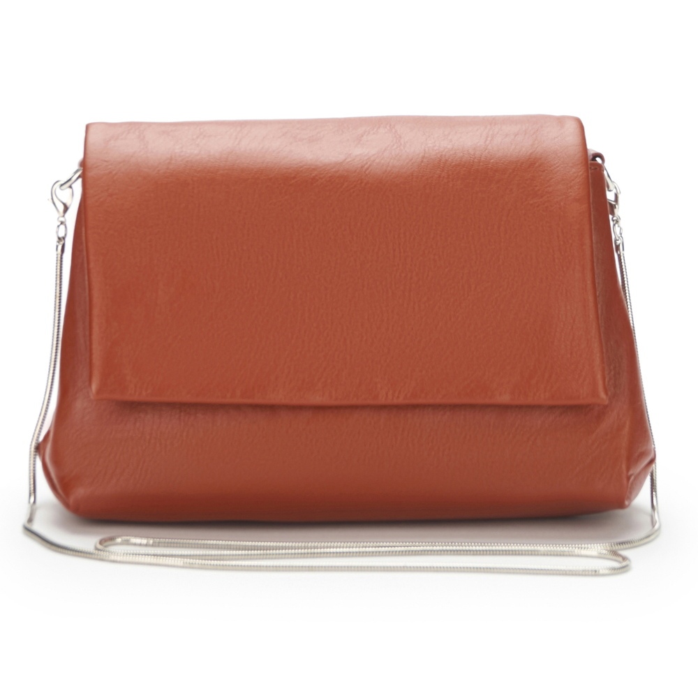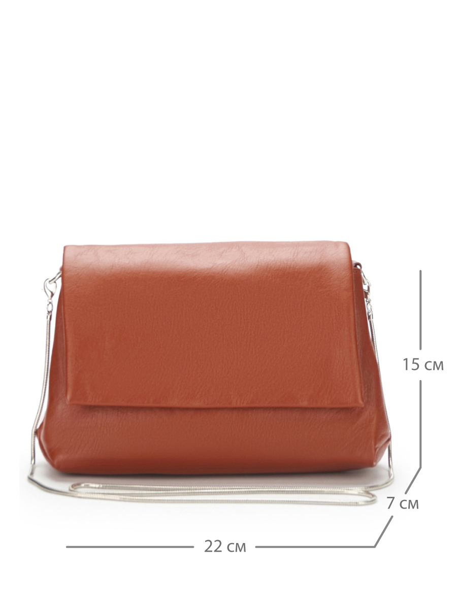 Стильная небольшая модель, изготовленная из зернистой эко кожи, отлично сочетающейся с фурнитурой серебристого цвета. Под клапаном на магнитах расположено одно основное отделение, внутри которого выделен один открытый карман. На обратной стороне выделена дополнительная секция. В комплекте ремень-цепочка на карабинах.