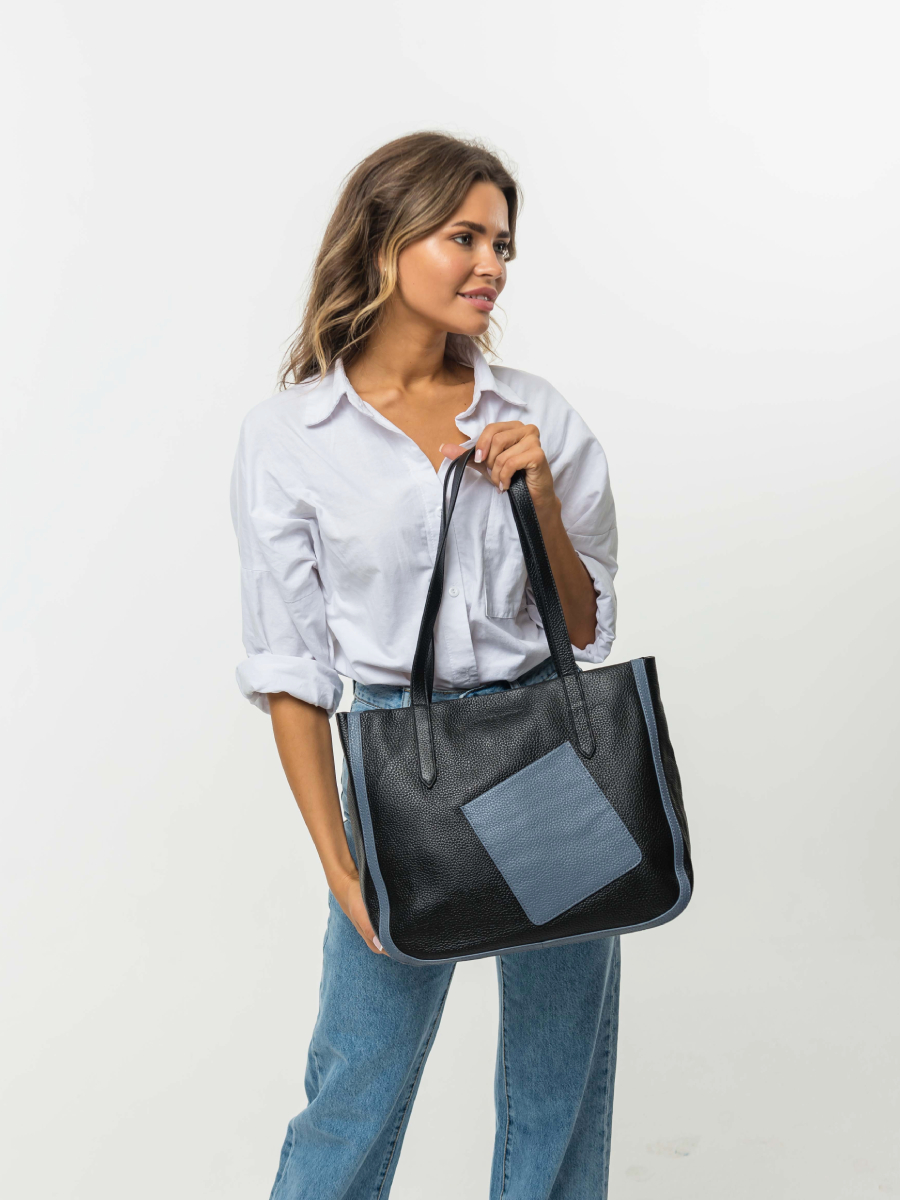 Женская сумка-шоппер черная DY-43-04 натуральная кожа