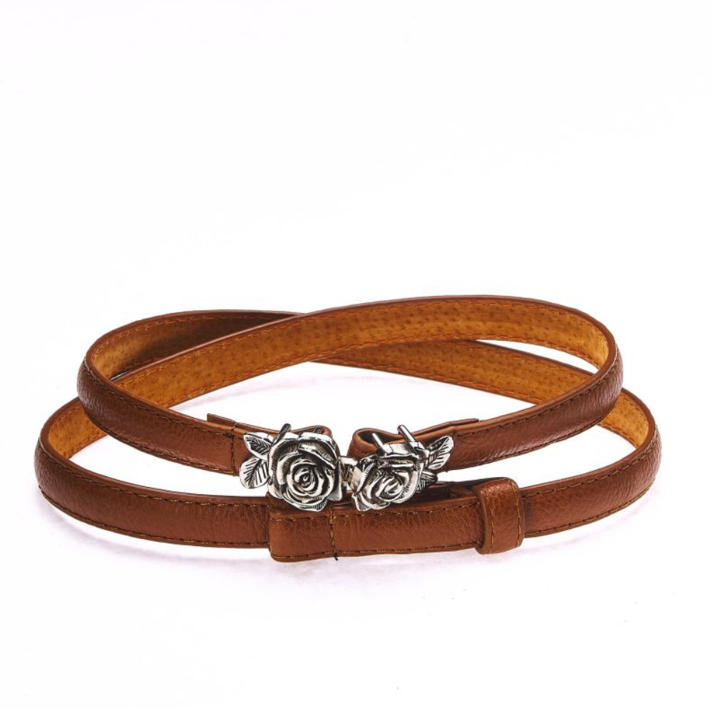 Женский ремень из экокожи от бельгийского бренда Jane's Story. Ремень с металлической пряжкой станет оригинальным акцентом вашего образа. Размер ремня (с пряжкой) - 86*1,5 см.