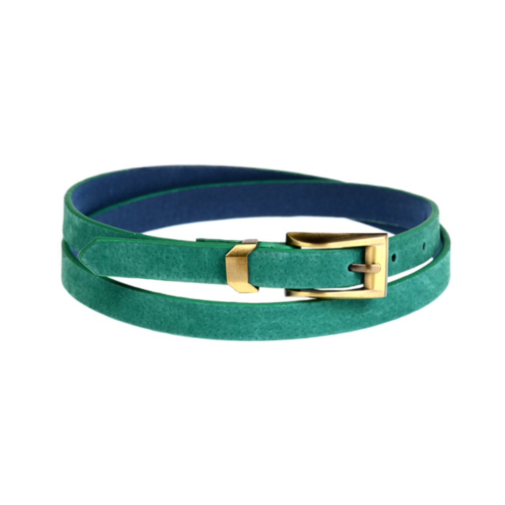 Женский ремень из натуральной кожи с текстурой замши от бельгийского бренда Jane's Story. Ремень с металлической пряжкой станет оригинальным акцентом вашего образа. Размер ремня (с пряжкой) - 103*1,5 см.