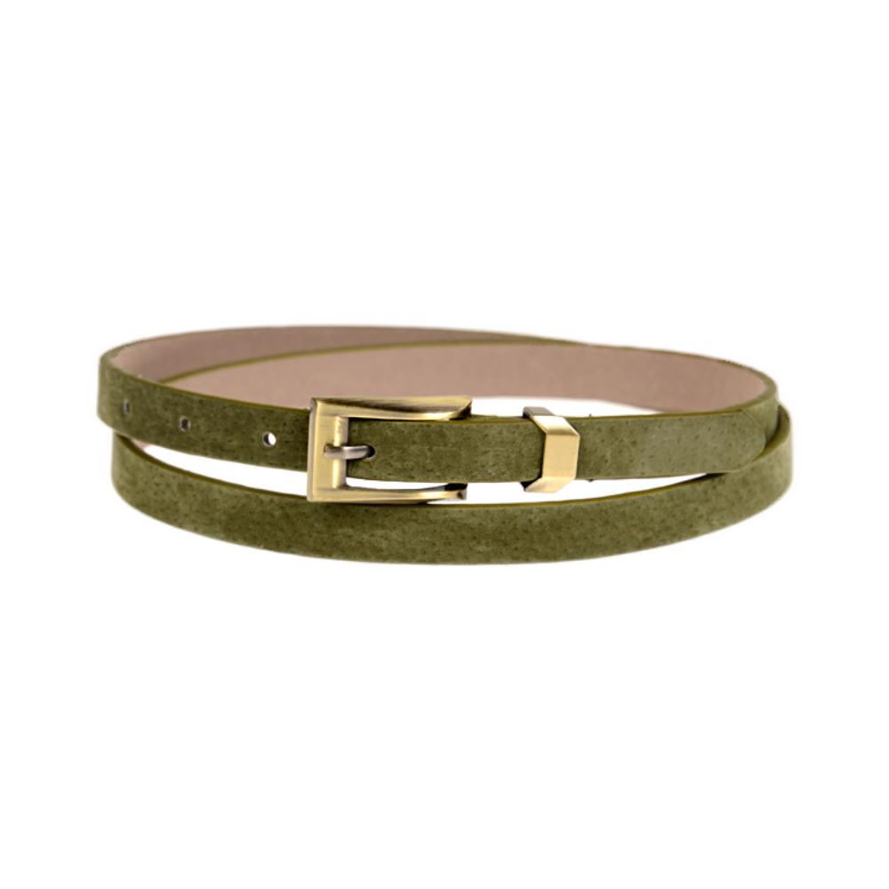 Женский ремень из натуральной кожи с текстурой замши от бельгийского бренда Jane's Story. Ремень с металлической пряжкой станет оригинальным акцентом вашего образа. Размер ремня (с пряжкой) - 103*1,5 см.
