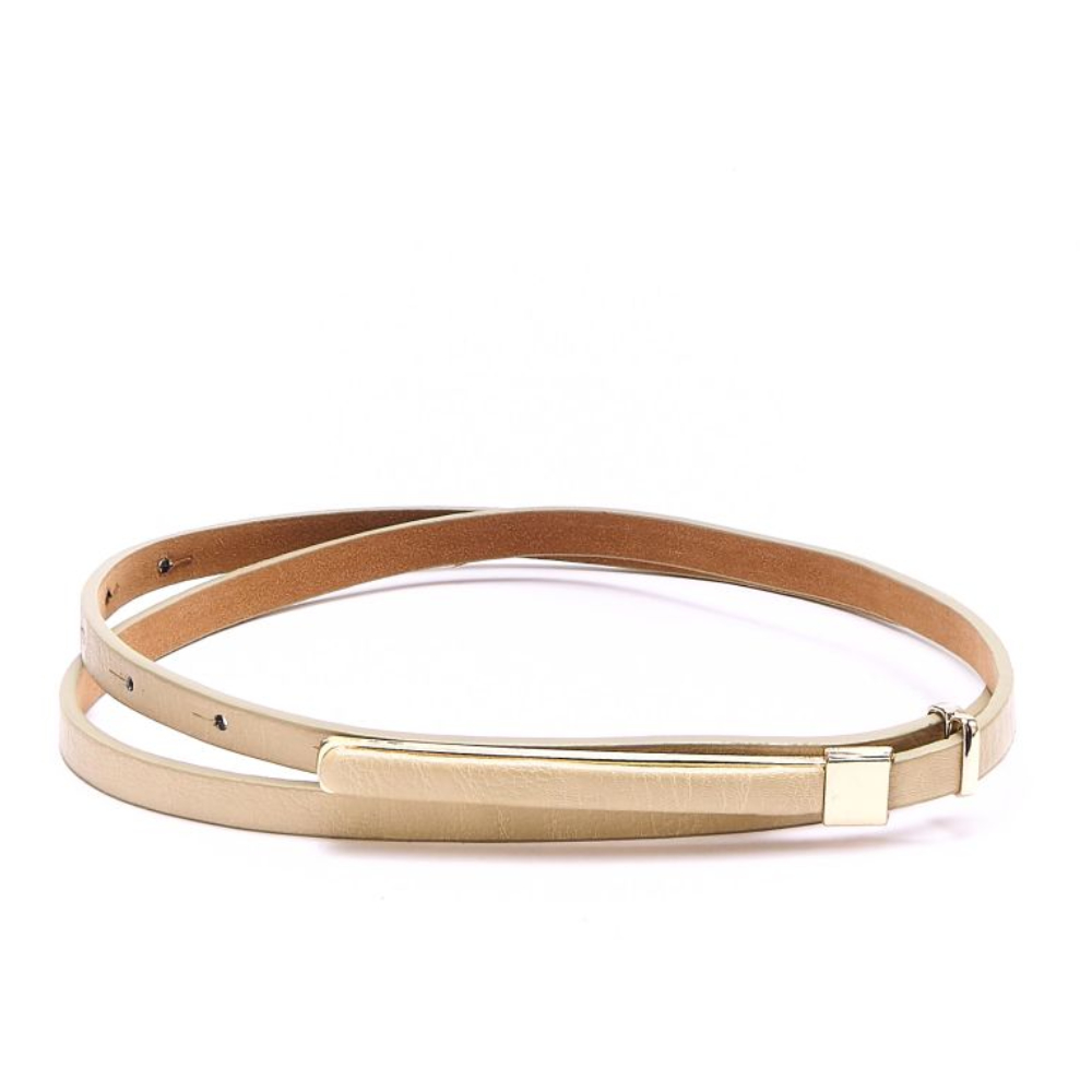 Женский ремень из экокожи от бельгийского бренда Jane's Story. Ремень с металлической пряжкой станет оригинальным акцентом вашего образа. Размер ремня (с пряжкой) - 102*1 см.
