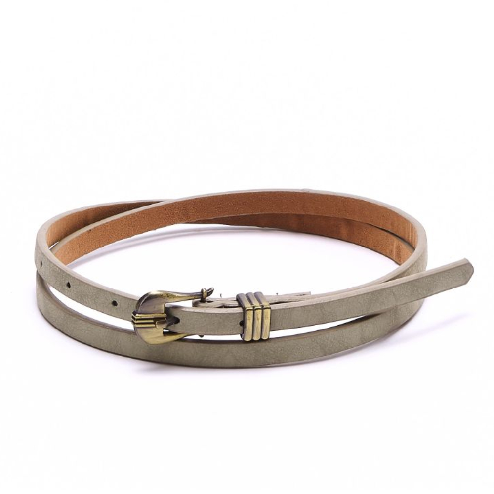 Женский ремень из экокожи от бельгийского бренда Jane's Story. Ремень с металлической пряжкой станет оригинальным акцентом вашего образа. Размер ремня (с пряжкой) - 102*1 см.