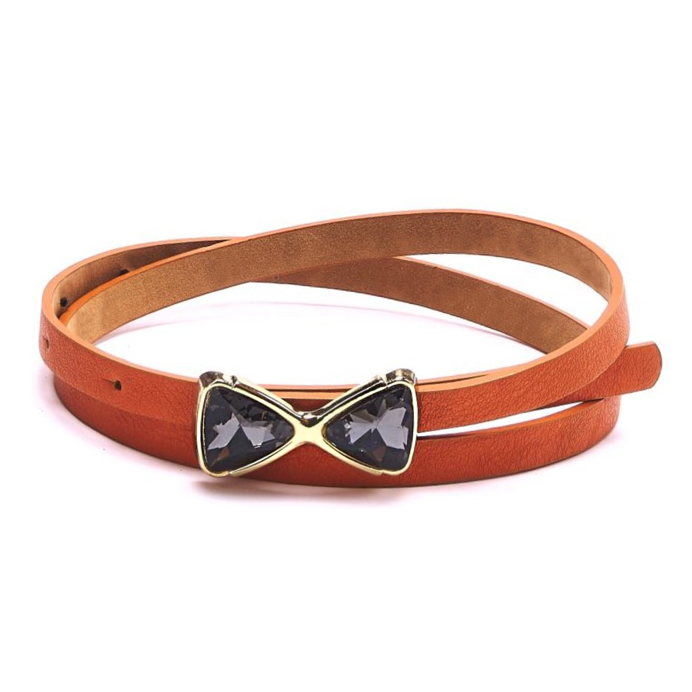 Женский ремень из экокожи от бельгийского бренда Jane's Story. Ремень с металлической пряжкой станет оригинальным акцентом вашего образа. Размер ремня (с пряжкой) - 103*1,5 см.
