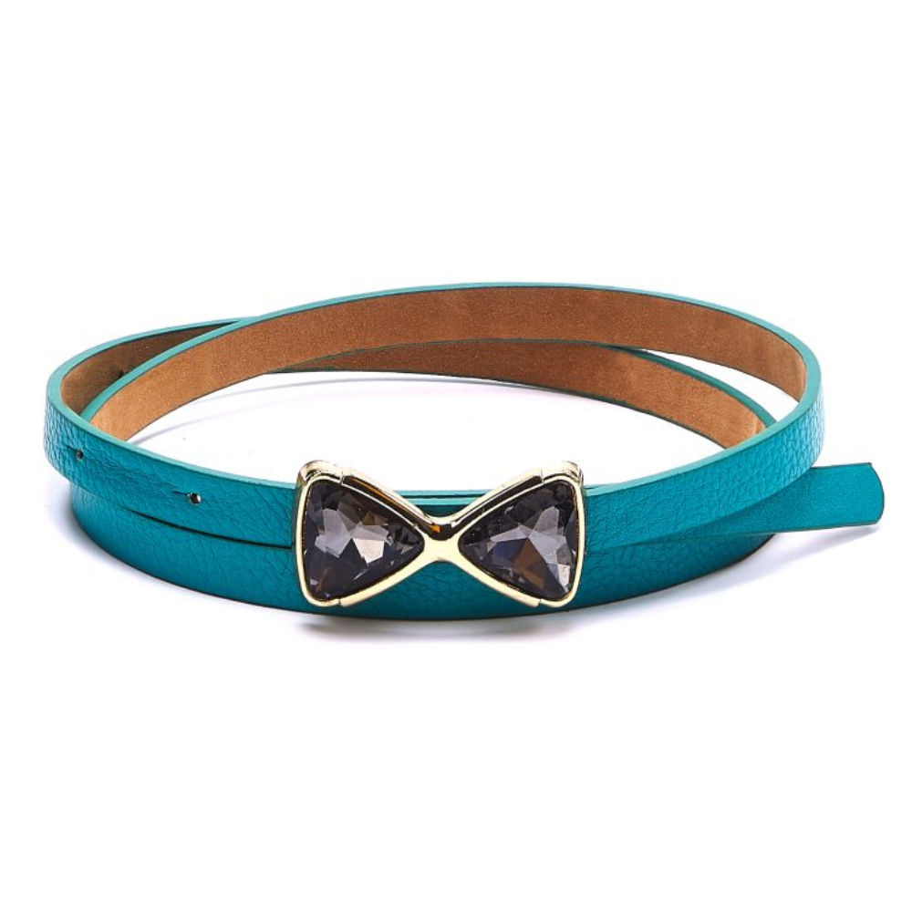 Женский ремень из экокожи от бельгийского бренда Jane's Story. Ремень с металлической пряжкой станет оригинальным акцентом вашего образа. Размер ремня (с пряжкой) - 103*1,5 см.