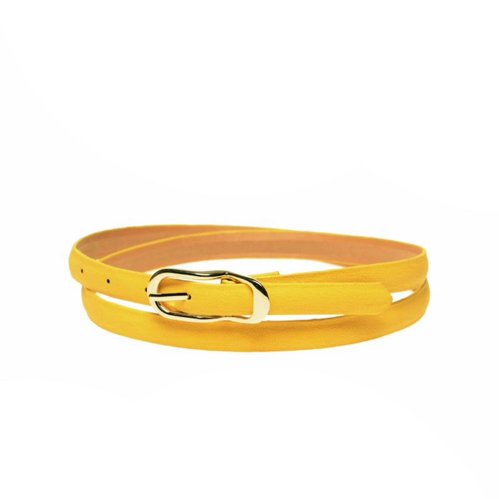Женский ремень из экокожи от бельгийского бренда Jane's Story. Ремень с металлической пряжкой станет оригинальным акцентом вашего образа. Размер ремня (с пряжкой) - 107*1,5 см.