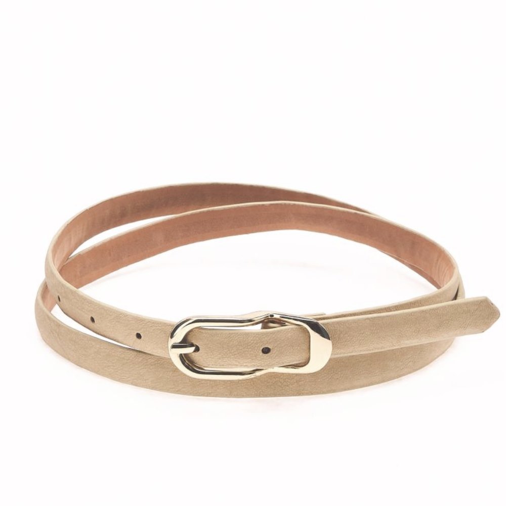 Женский ремень из экокожи от бельгийского бренда Jane's Story. Ремень с металлической пряжкой станет оригинальным акцентом вашего образа. Размер ремня (с пряжкой) - 107*1,5 см.