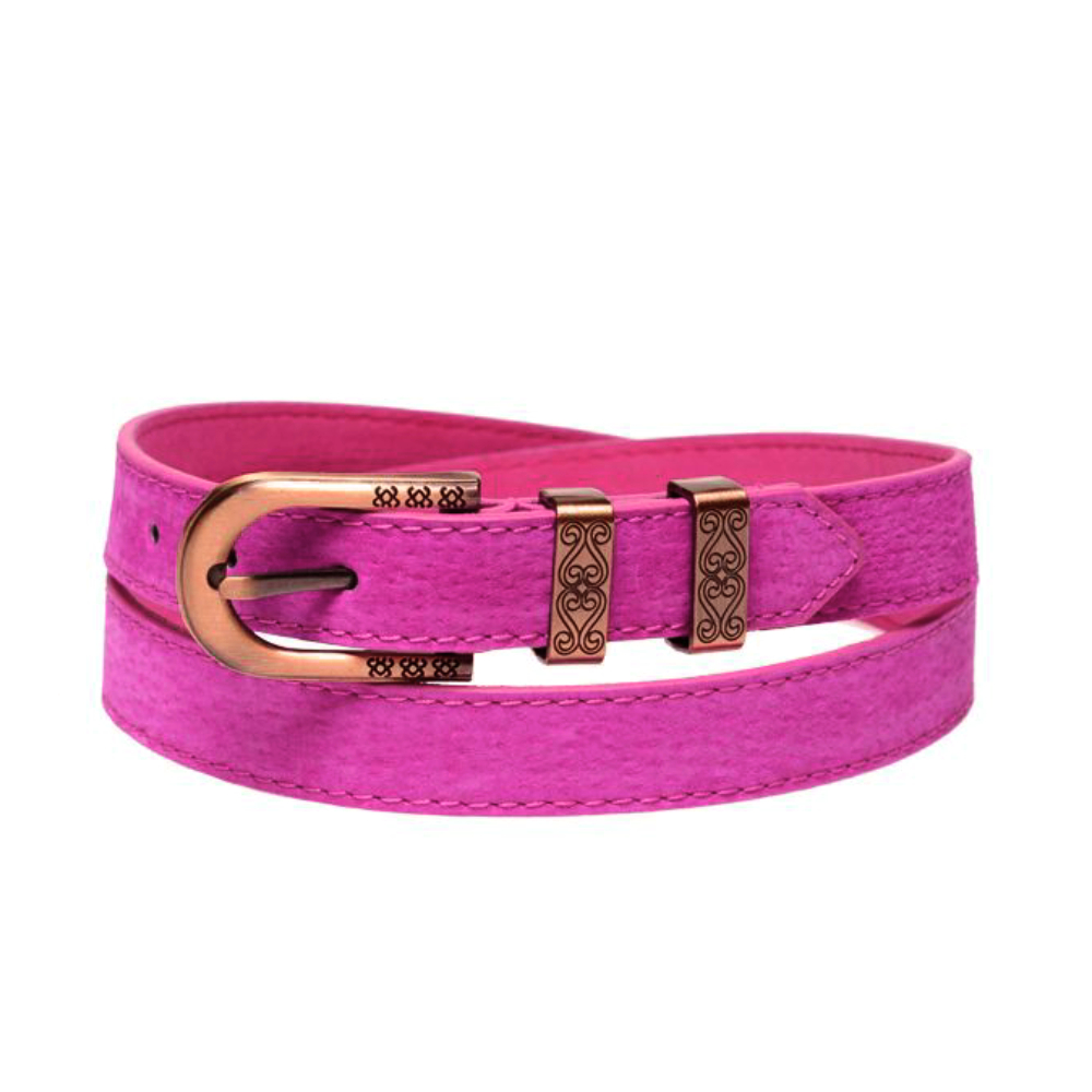Женский ремень из натуральной кожи с текстурой замши от бельгийского бренда Jane's Story. Ремень с металлической пряжкой станет оригинальным акцентом вашего образа. Размер ремня (с пряжкой) - 105*2 см.