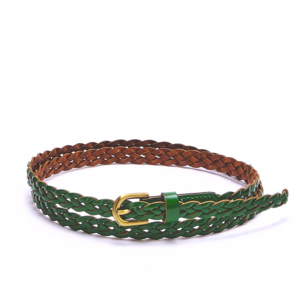 Женский ремень из экокожи от бельгийского бренда Jane's Story. Плетеный ремень с металлической пряжкой станет оригинальным акцентом вашего образа. Размер ремня (с пряжкой) - 108*1,5 см.