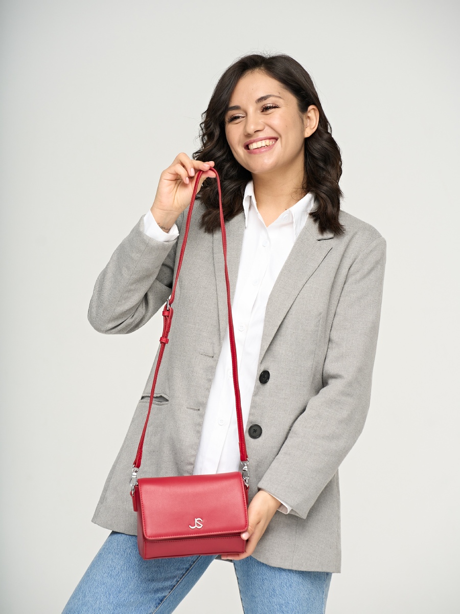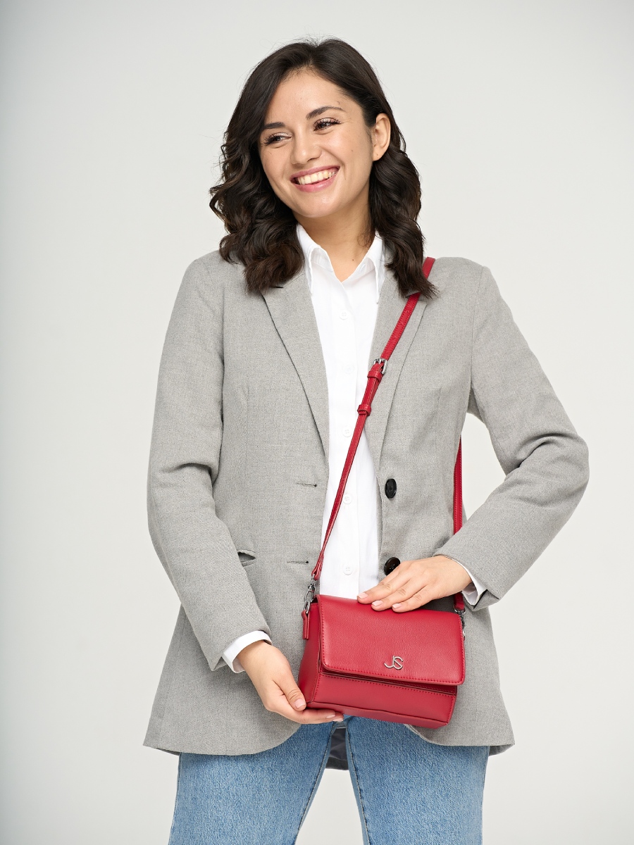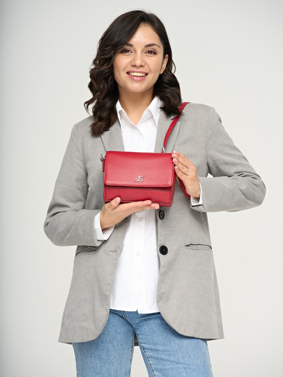 Небольшая стильная модель из натуральной кожи, отлично сочетающейся с фурнитурой серебристого цвета. Под клапаном на кнопке-магните расположено одно основное отделение на молнии, внутри которого выделены карманы: открытый, потайной и перегородка. Плечевой ремень прилагается.