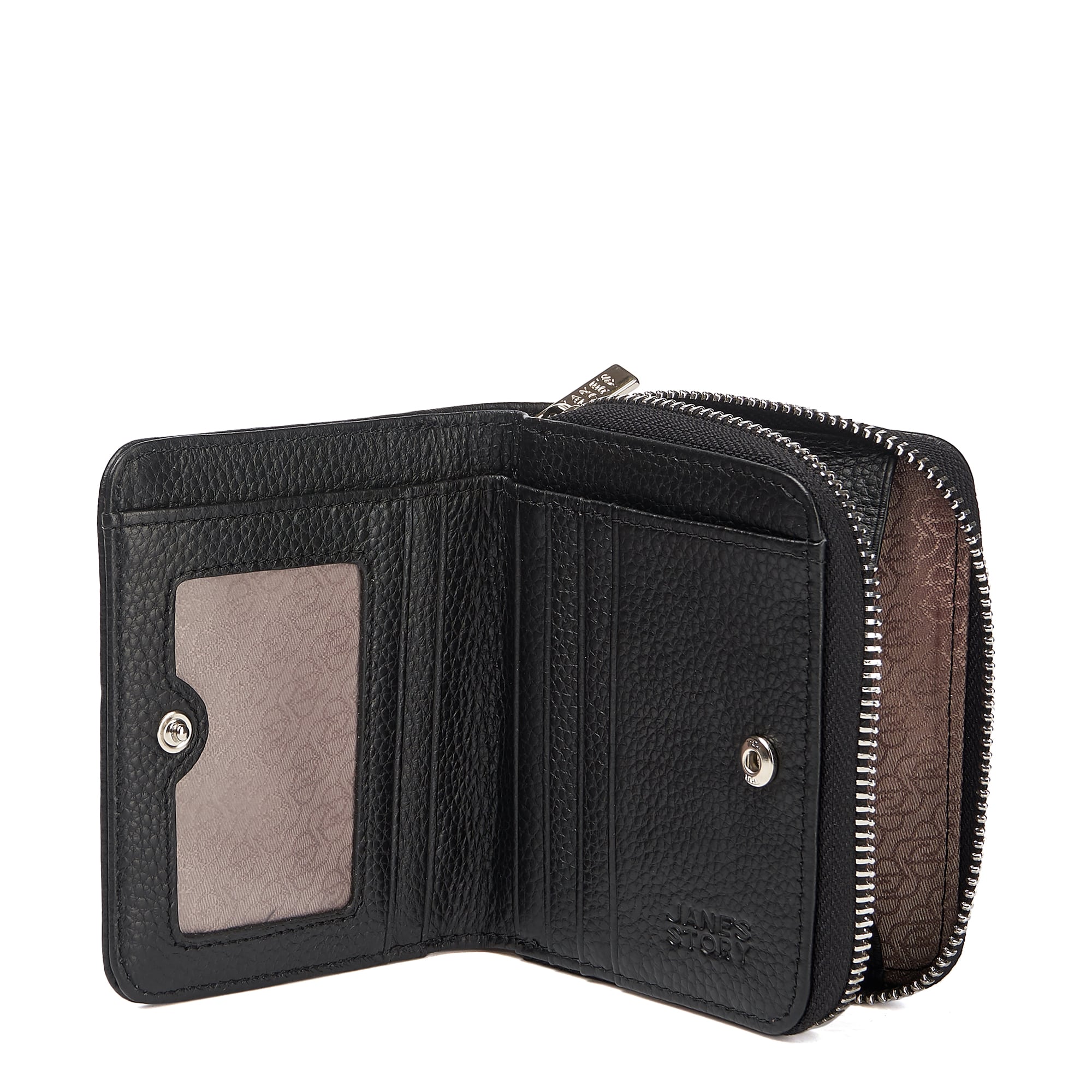 Компактная, но вместительная модель из натуральной зернистой кожи, отлично сочетающейся с фурнитурой серебристого цвета. Два основных отделения ( одно на кнопке, другое на молнии ). Внутри шесть секций под карты и две открытых. Купюры располагаются в сложении. Модель продается в эффектной подарочной картонной коробке.
