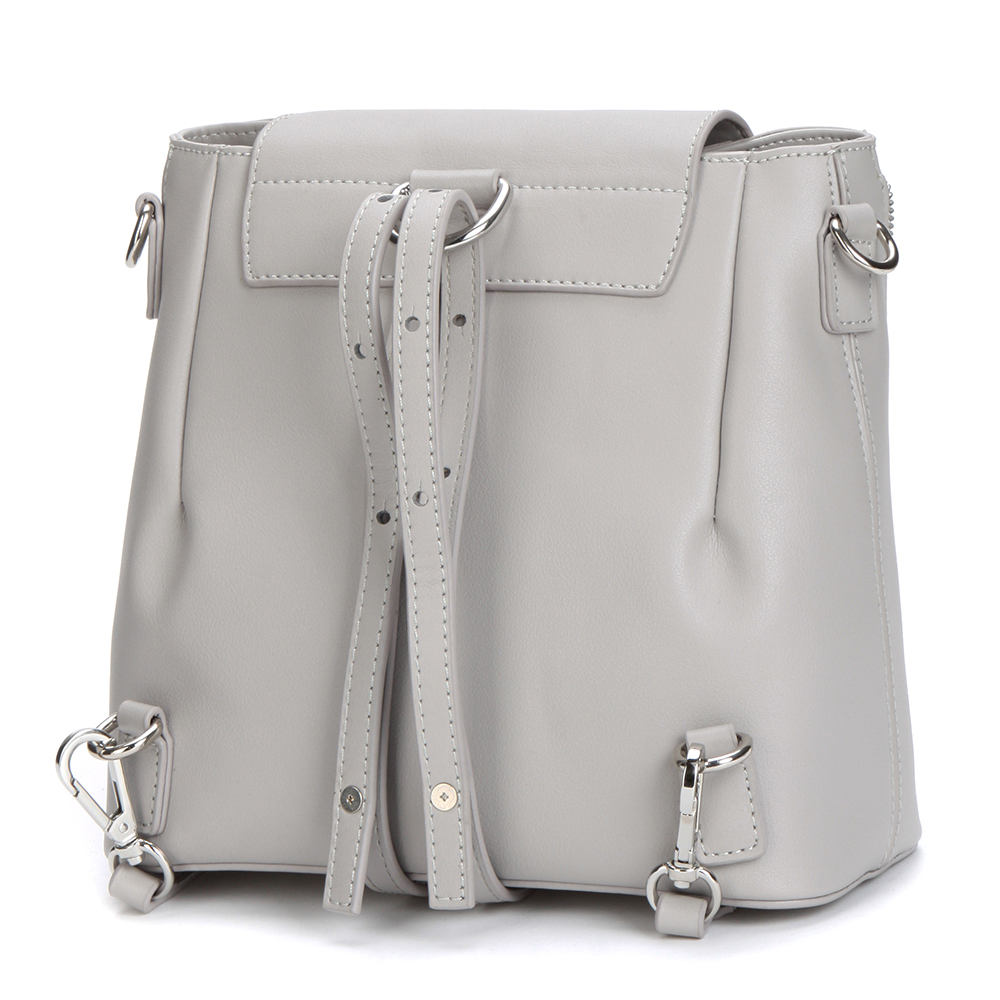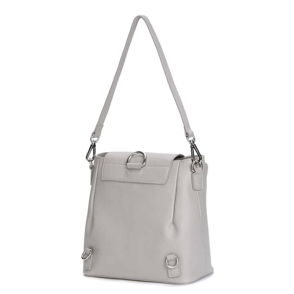 Очень стильный рюкзак-трансформер изготовлен из натуральной кожи с легким глянцем. Отлично сочетается с элегантной фурнитурой серебристого цвета. Под клапаном на молнии представлено одно основное отделение ( с одним потайным и двумя открытыми карманами ) . Лямки рюкзака регулируются по длине.