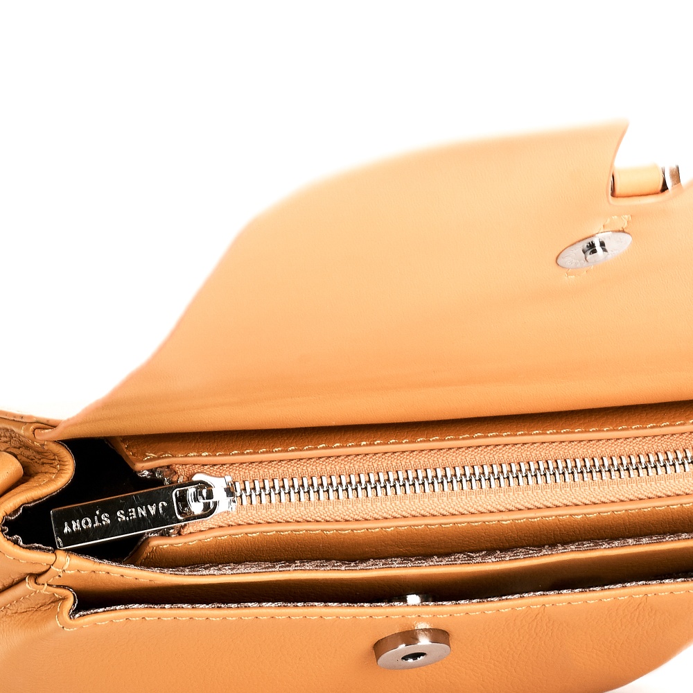 Компактная и легкая кросс-боди. Изготовлена из натуральной зернистой кожи. Отлично сочетается с фурнитурой серебристого цвета. Под клапаном на кнопке-магните расположено одно основное отделение на молнии, внутри которого один открытый карман. Дополнительная открытая секция- под клапаном. Длинный плечевой ремень прилагается.
