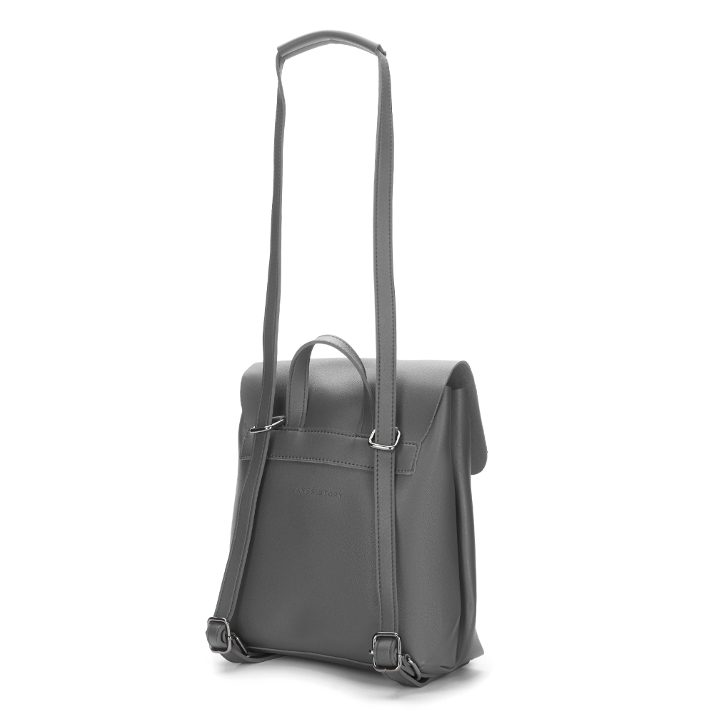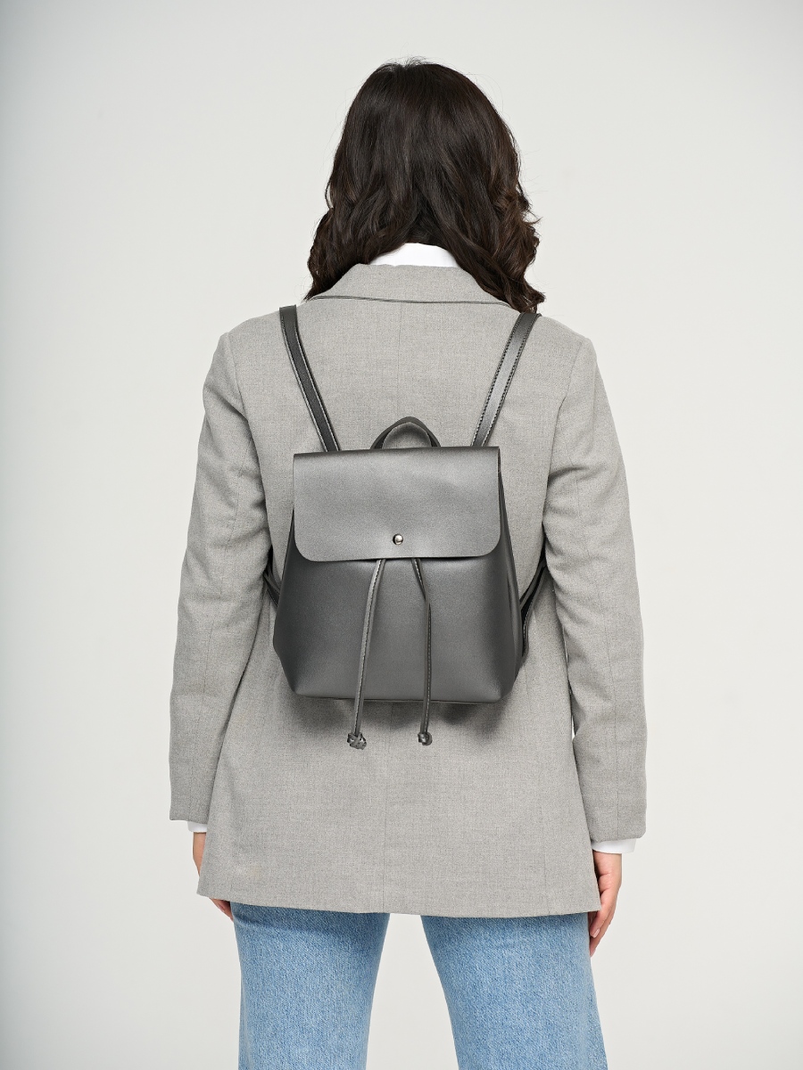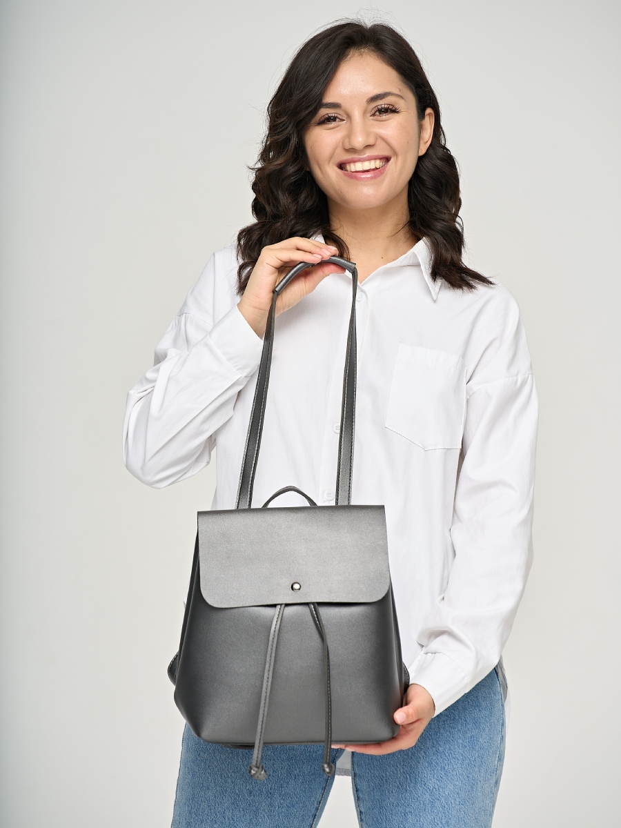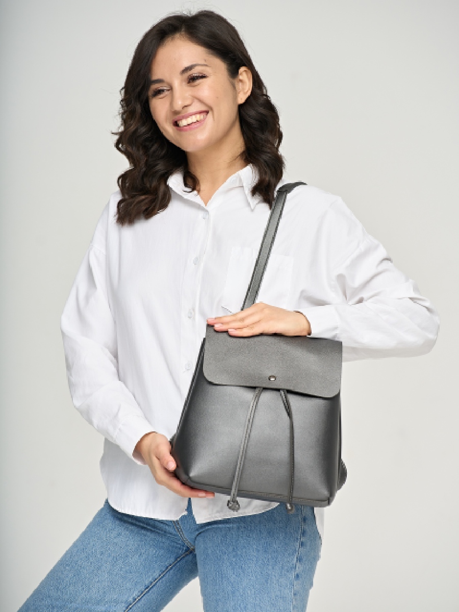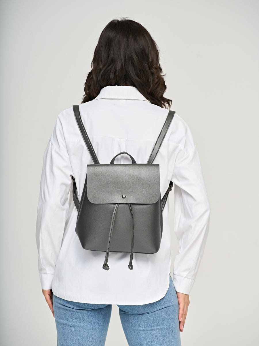 Стильный рюкзак-трансформер, выполненный из гладкой эко кожи, прекрасно сочетающейся с фурнитурой серебристого цвета. Основное отделение под клапаном на магните. Лямки рюкзака регулируются по длине.