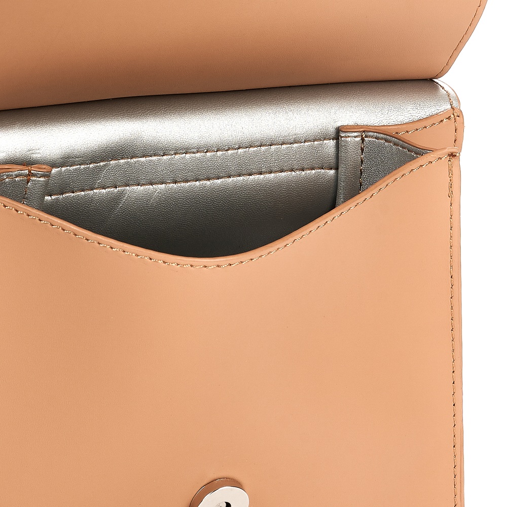 Интересная форма модели придает ей особый шарм. Изготовлена из гладкой эко кожи, прекрасно сочетающейся с фурнитурой серебристого цвета. Под клапаном на магните расположено одно основное отделение . Внутри расположены открытые карманы. Длинный плечевой ремень прилагается.
