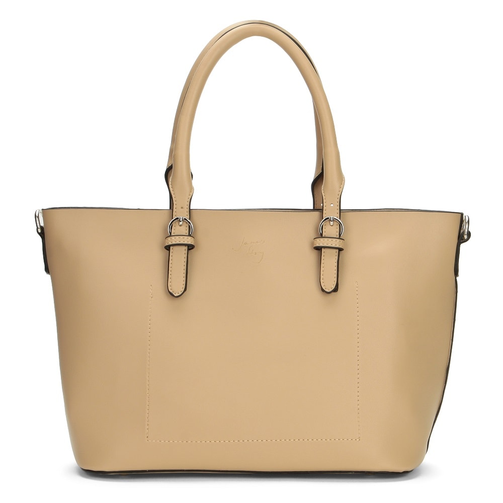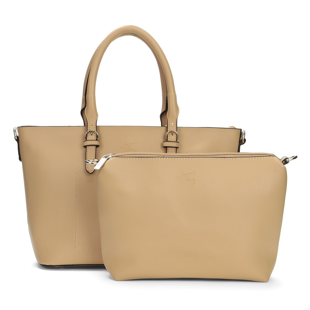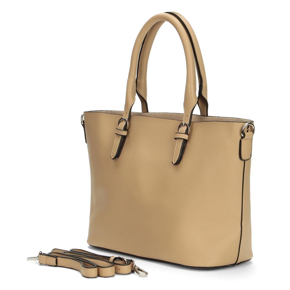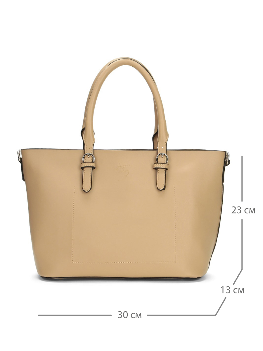 Большая удобная сумка-шоппер из гладкой эко кожи, отлично сочетающейся с фурнитурой серебристого цвета. Продается в комплекте с небольшой сумочкой из того же цвета и материала. Длинный плечевой ремень прилагается.
