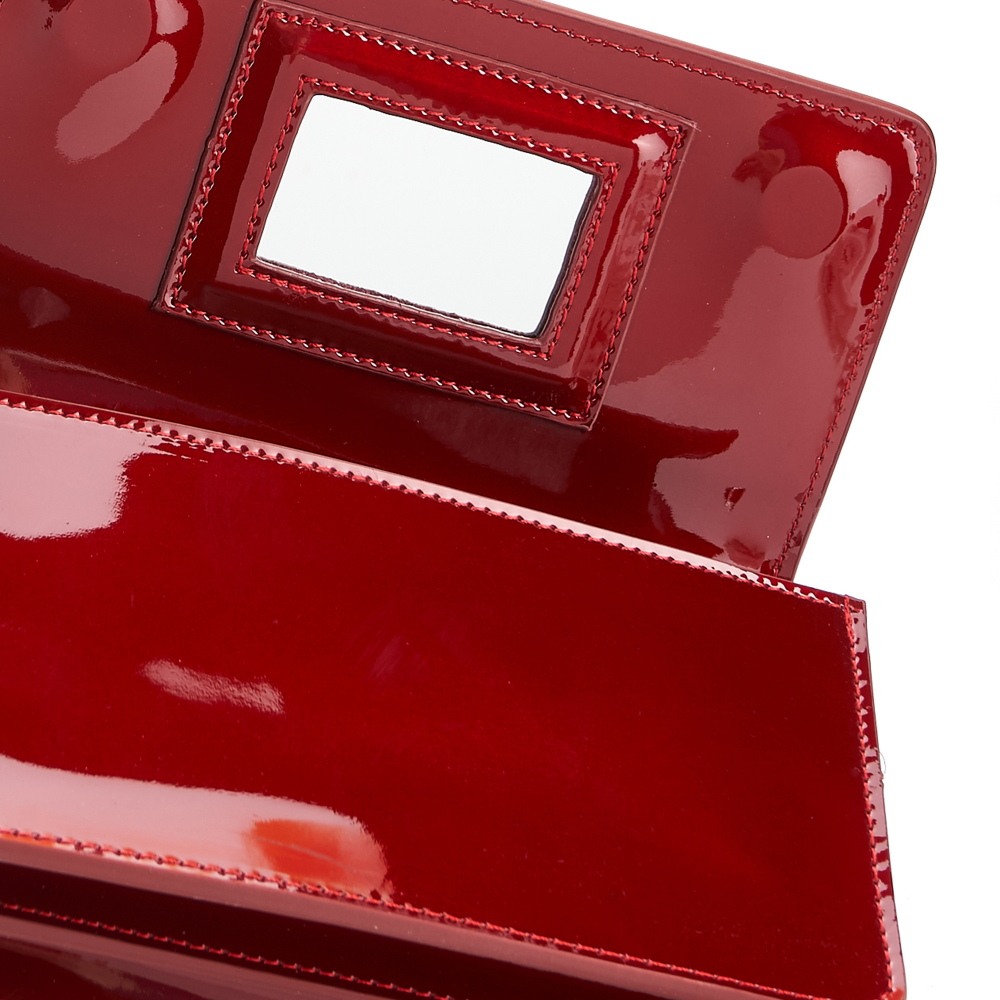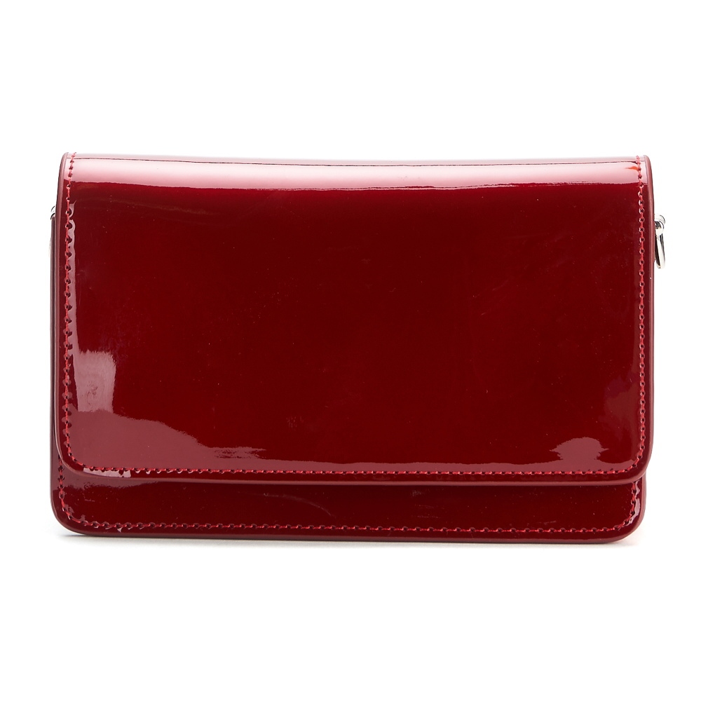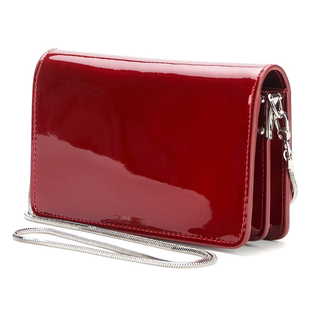 Очень эффектная модель, изготовлена натуральной лакированной кожи, отлично сочетающейся с фурнитурой серебристого цвета. Под клапаном на магните, находится основное отделение ( с одним карманом-перегородкой ) и вставкой с зеркалом. В комплекте плечевая металлическая цепочка на элегантных карабинах.