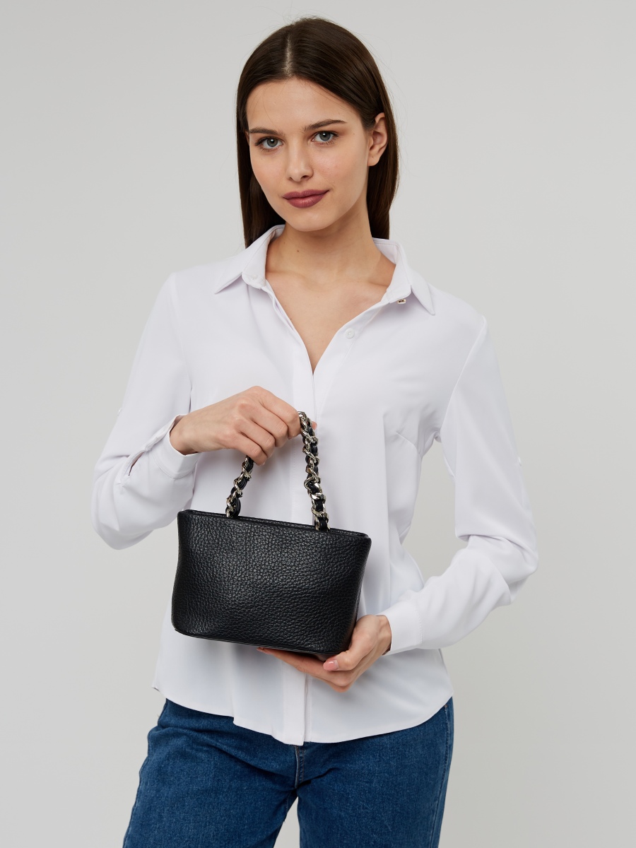 Женская сумка кросс-боди из мягкой зернистой экокожи настоящий тренд наступающего сезона. Классическая форма и стильные ручки, декорированные металлической цепью, - такая сумка станет дополнением любого образа. Габариты кроссбоди- (ВхШхГ) 14х20х9 см. Основное отделение на подкладе из плотного полиэстера закрывается на молнию. Внутри модели расположен один карман на молнии. Съемный плечевой ремень регулируется по длине до 110 см, поэтому стильную сумку можно носить на плечо и через плечо. Уплотненное дно позволяет сумочке сохранять форму и устойчивость. Фурнитура выполнена в серебристом цвете.