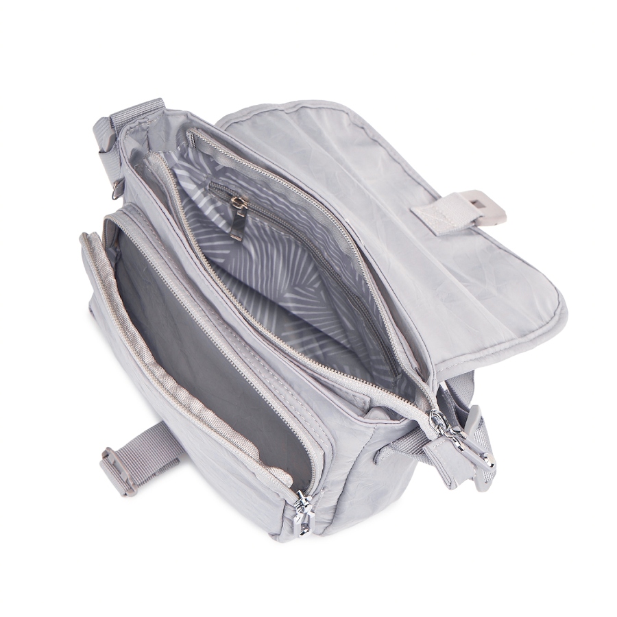 Легкая и вместительная женская сумка из жатого полиэстера со множеством отделений отлично подойдет для прогулок и путешествий. Размер изделия по швам - 20х15х8 см. Плечевой ремень регулируется до 120 см. Сумка поставляется в полиэтителеновой упаковке.
