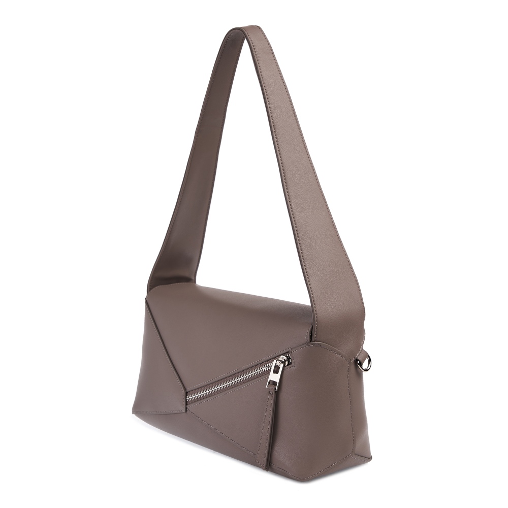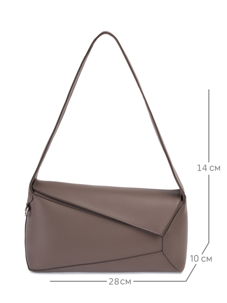 Женская сумка-багет из гладкой натуральной кожи. Габариты - 28х14х10 см. Главное отделение сумки закрывается на молнию и стильный асимметричный клапан. Внутри есть открытый карман и карман на молнии. Дополнительный карман на молнии расположен на внешней задней стенке сумки. Подклад выполнен из плотного полиэстера. Длина ремня - 65 см. Фурнитура выполнена в цвете хром. Сумка поставляется в текстильной и полиэтиленовой упаковке.