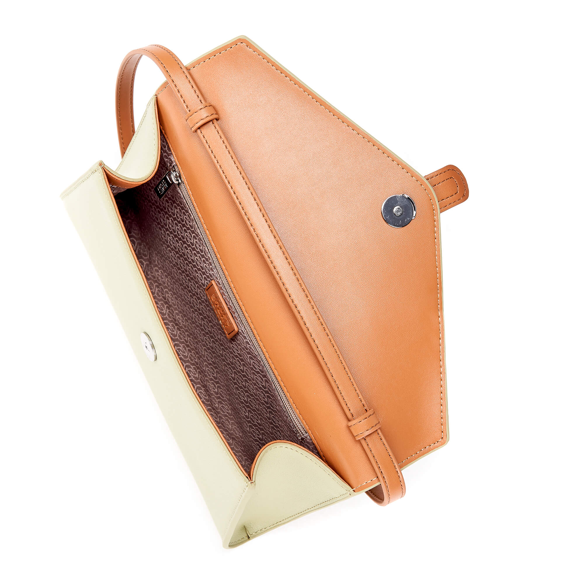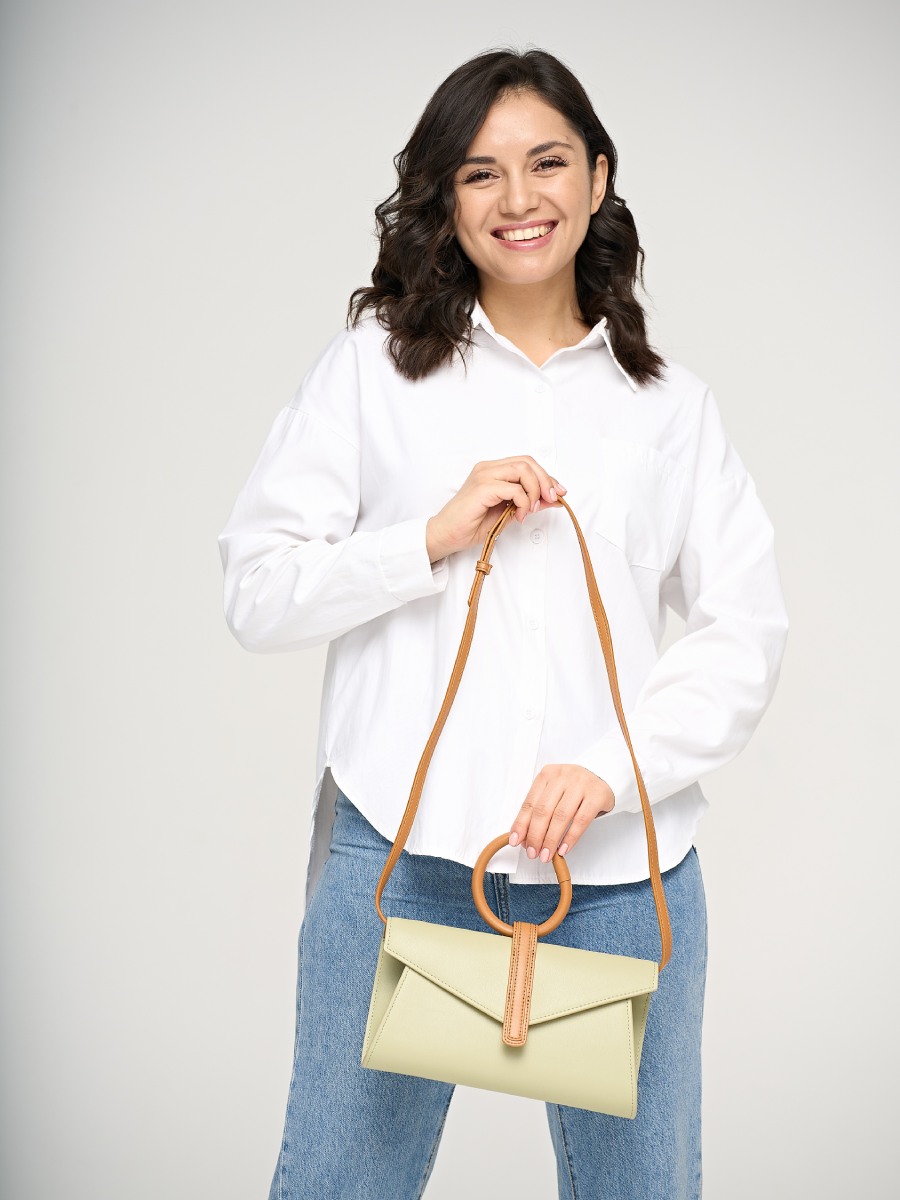 Небольшая сумка клатч из гладкой натуральной кожи. Основное отделение под клапаном, внутри один открытый карман, второй потайной. К сумке прилагается длинный плечевой ремень.