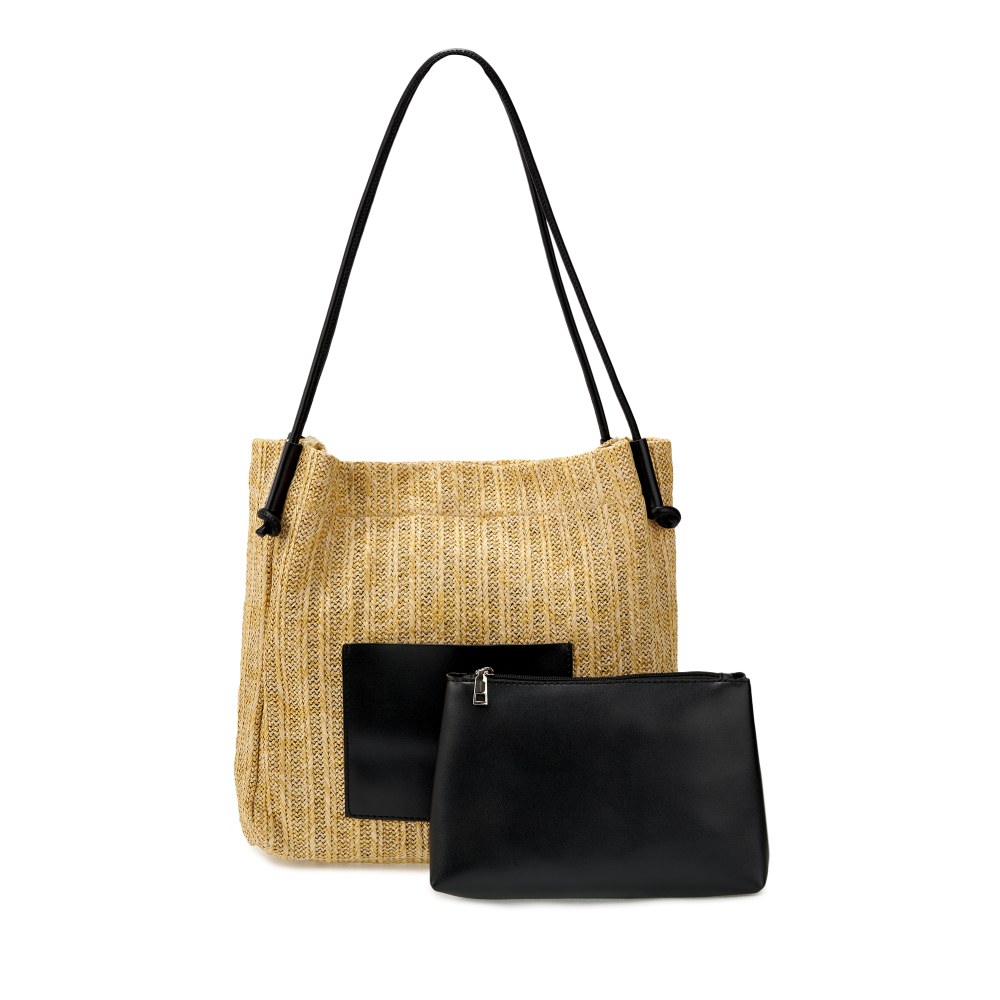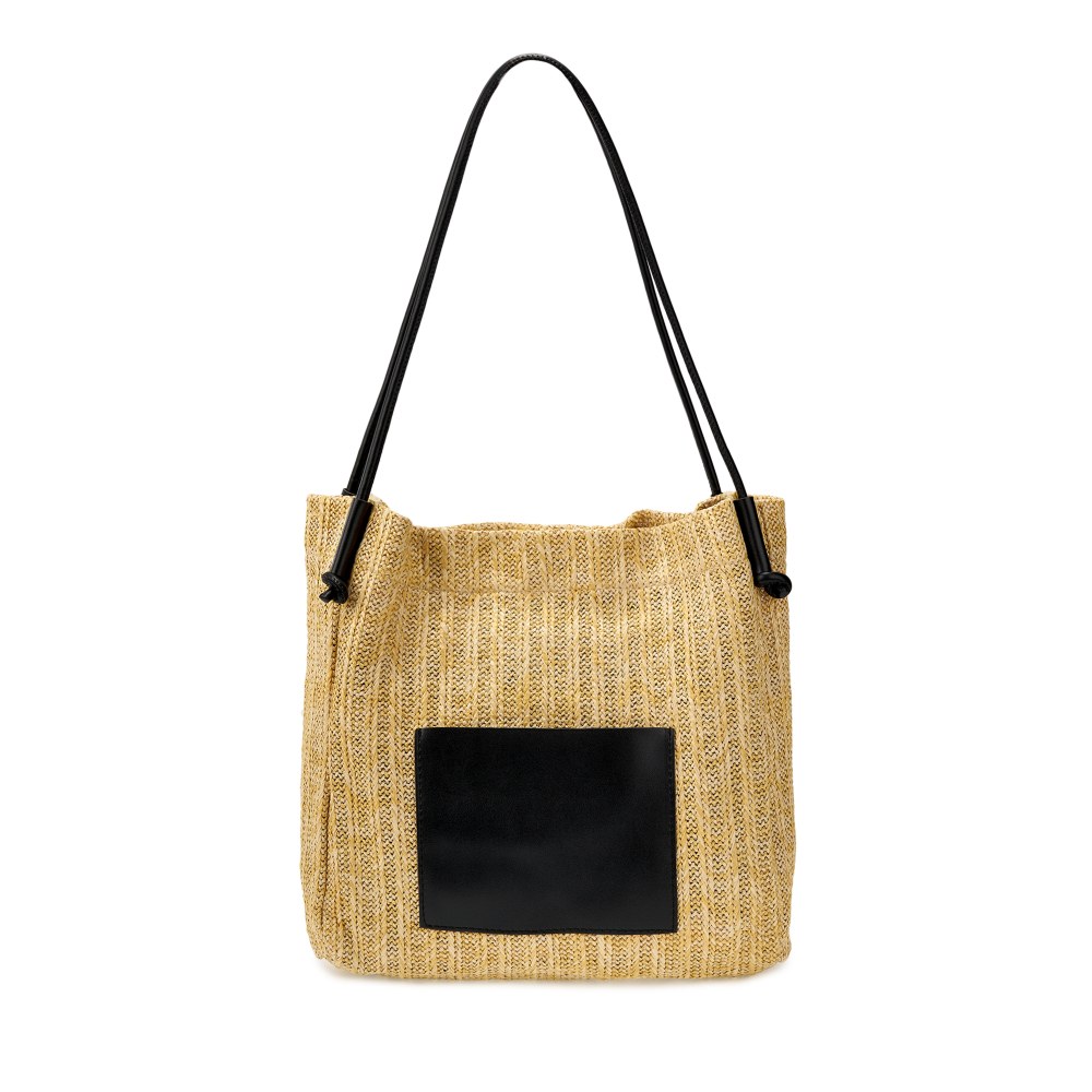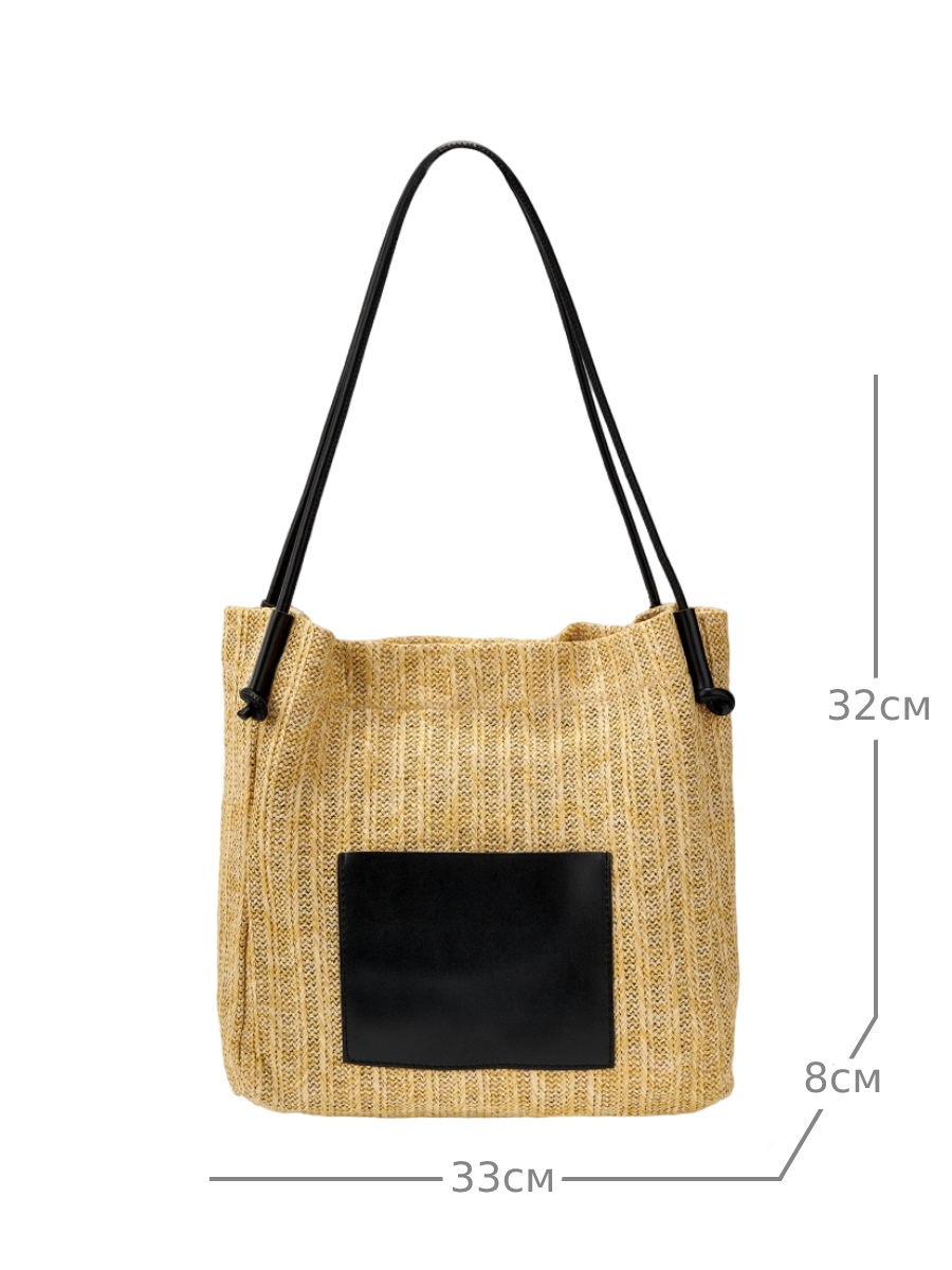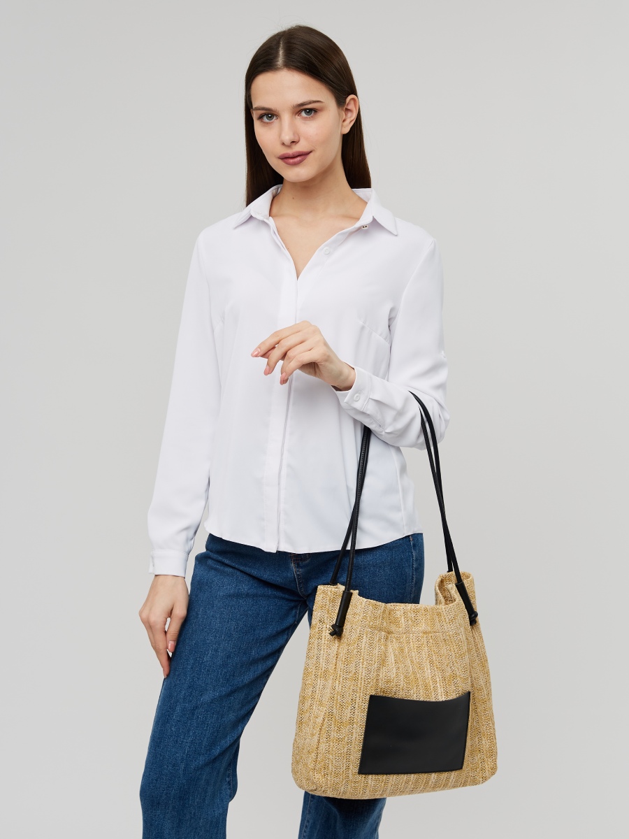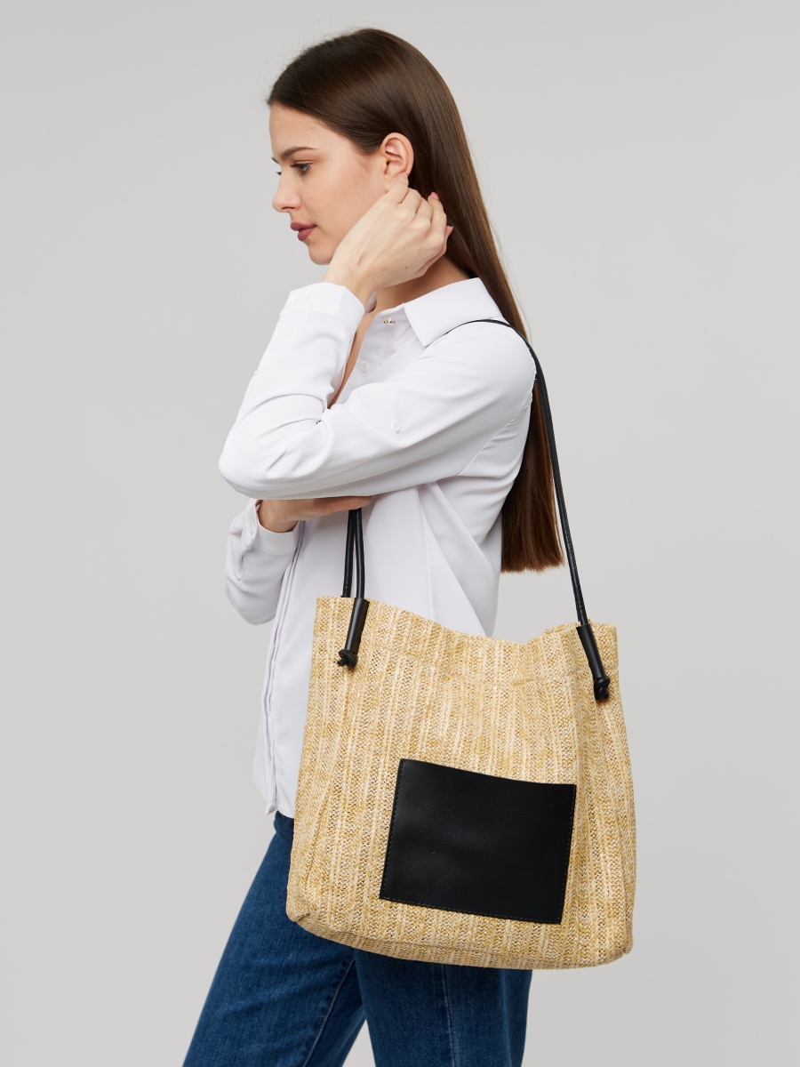 Большая плетеная женская сумка-шоппер очень легкая и вместительная, поэтому станет отличным аксессуаром на весну и лето. Яркие контрастные элементы выполнены из мягкой экокожи. Размер сумки на плечо ВхШхГ - 32х33х8 см. Внутри находится одно вместительное отделение, которое закрывается на магнитную кнопку. На внешней стороне расположен открытый карман. В комплект входит съемная косметичка на молнии размером 24х15х7 см., выполненная из экокожи. Высота ручек составляет 30 см.