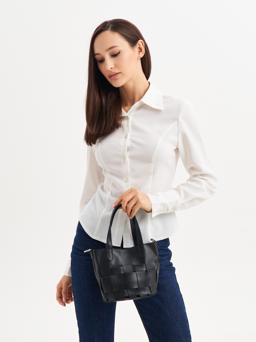 Женская сумка тоут выполнена из качественной матовой экокожи. Сумка средняя, габариты изделия (ВхШхГ)- 18х18х12 см. Модель выполнена без подкладки в технике переплетённых лент из кожи. Сумка плетеная закрывается на магнитную кнопку. В комплекте есть миниатюрная косметичка на молнии (14х12х7 см. ), регулируемый плечевой ремень до 110 см, удобно носить через плечо или как кроссбоди. Мягкая форма и оригинальный дизайн – такая сумка на плечо дополнит любой современный образ. Уплотненное дно позволяет сумочке сохранять форму и устойчивость. Фурнитура выполнена из металла в серебристом цвете. Сумка с застежкой поставляется в текстильной (пыльник) и полиэтиленовой упаковке, что защищает ее от повреждений, а также позволяет удобно хранить женскую сумочку в дальнейшем использовании.