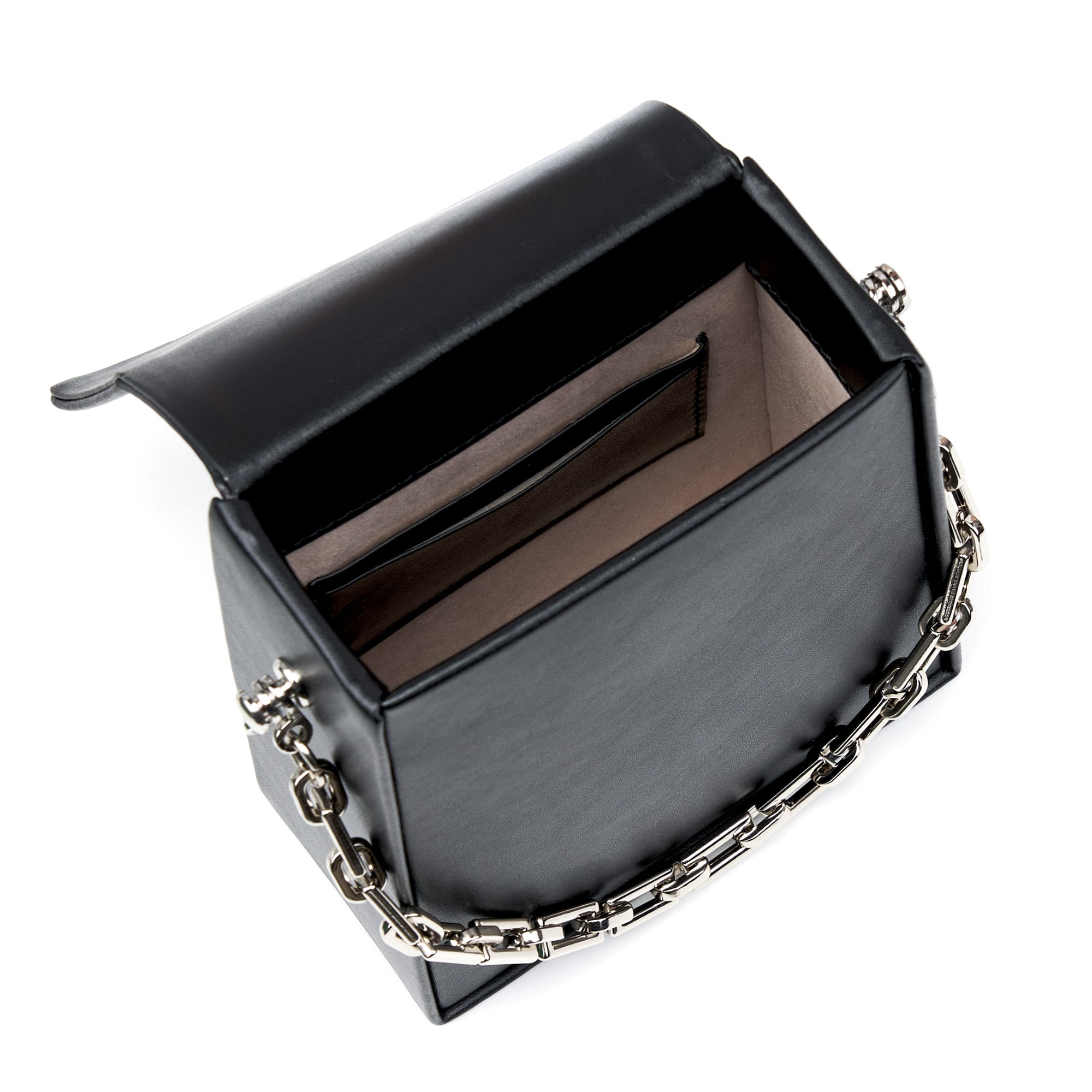 Женская сумка-сэтчел из натуральной кожи с клапаном на магните и серебристой фурнитурой. Модель с подкладом. Внутри - один открытый карман и два кармашка для визиток и проездных. К сумке прилагается плечевой ремень, регулируемый до 122 см. Цепочка не отстегивается. Сумка поставляется в текстильной и полиэтиленовой упаковке.
