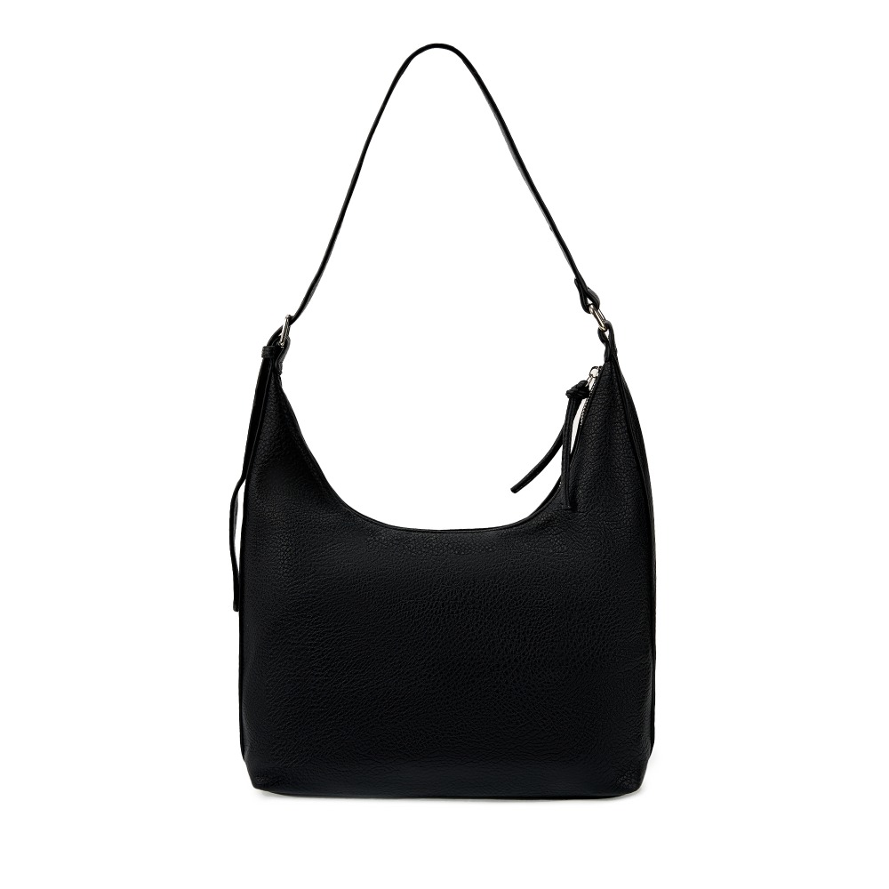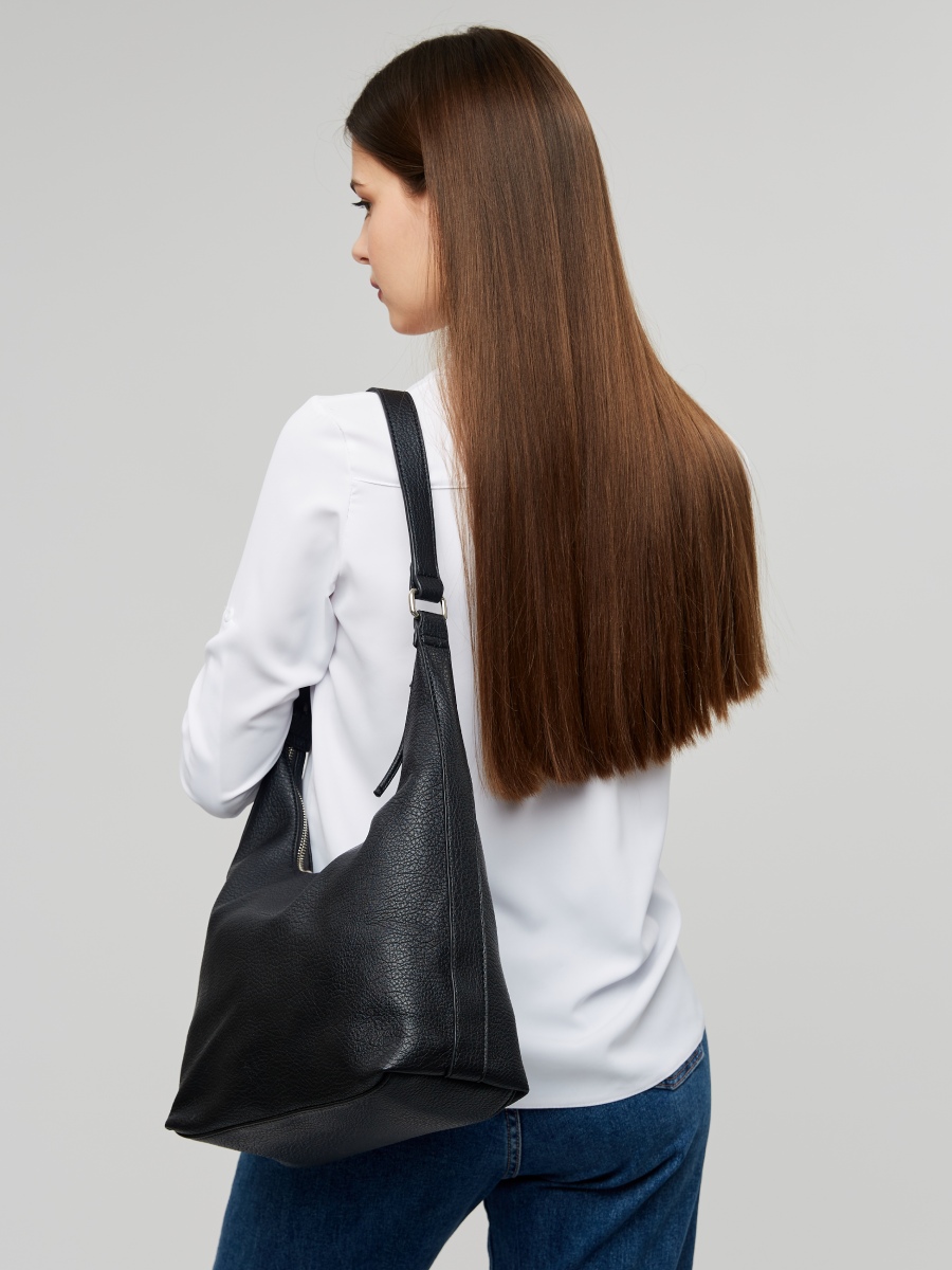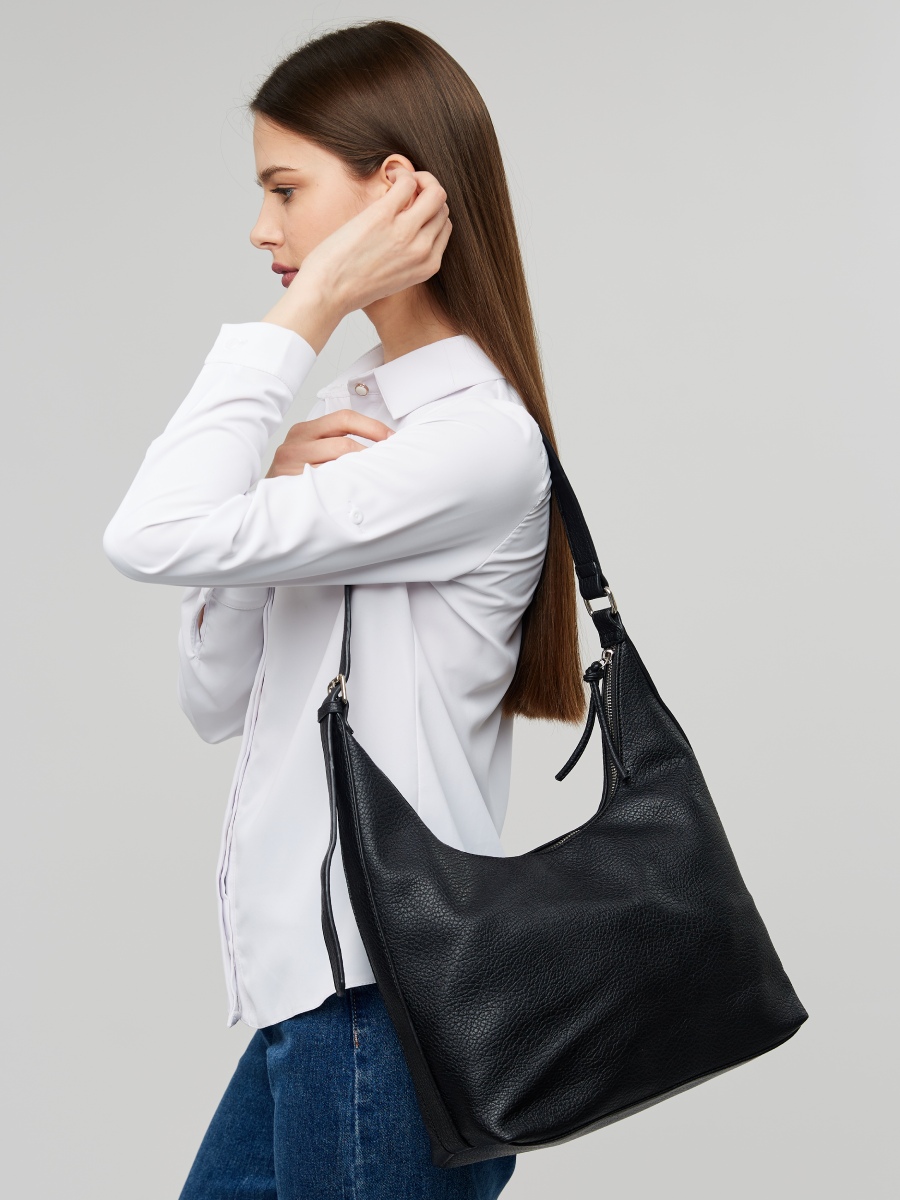 Большая женская сумка-хобо выполнена из качественной зернистой экокожи, которая имеет мягкую на ощупь фактуру. Габариты сумки на плечо - (ШхВхГ) 30х24х11 см. Сумка с широким ремнем легкая и универсальная, она без труда дополнит любой образ. Внутри вместительной сумки расположено одно главное отделение на текстильном подкладе, которое застегивается на надежную молнию. Также внутри сумки-шопера есть открытый карман и удобный карман на молнии. Плечевой ремень регулируется по длине до 70 см., поэтому сумку удобно носить на руке и на плечо. Уплотненное дно позволяет сумочке сохранять форму и устойчивость. Фурнитура выполнена в серебристом цвете.