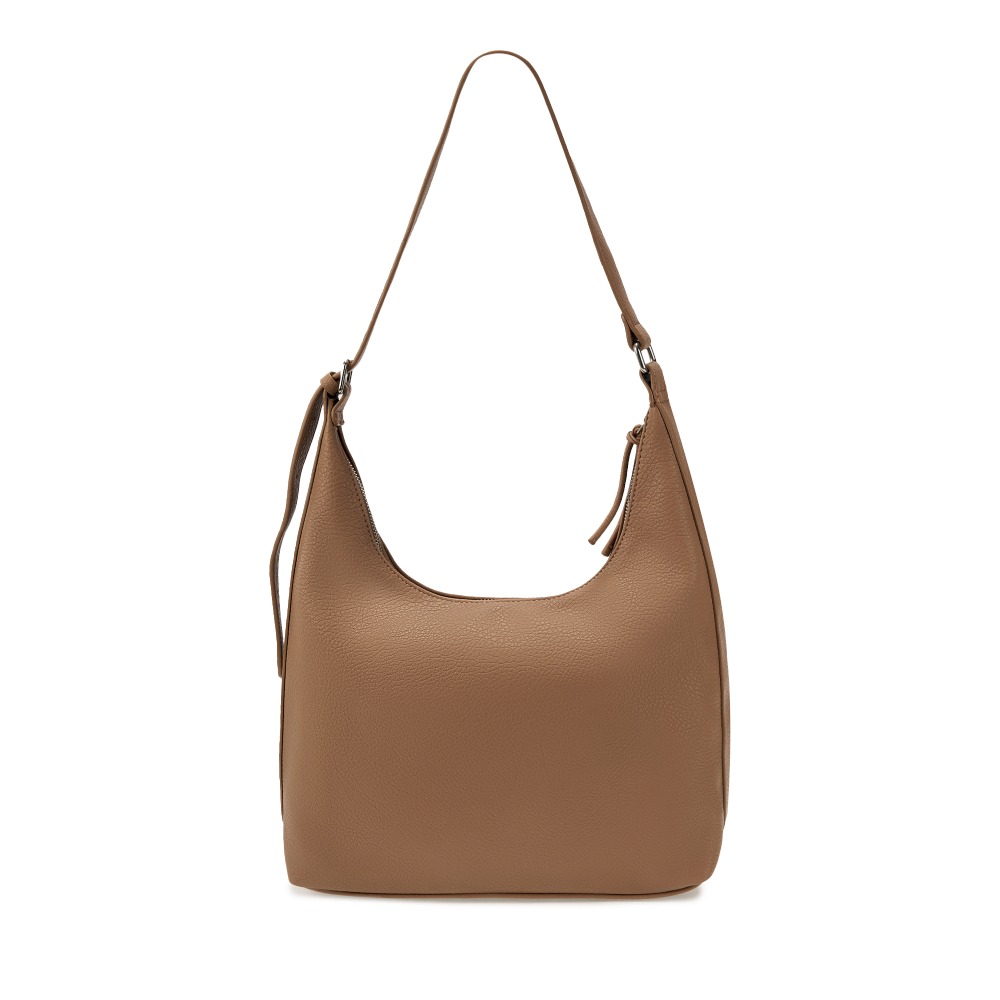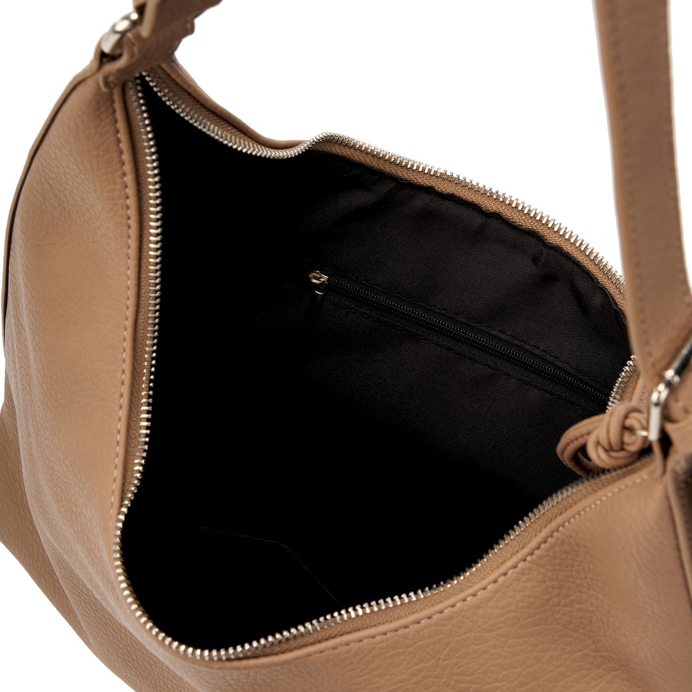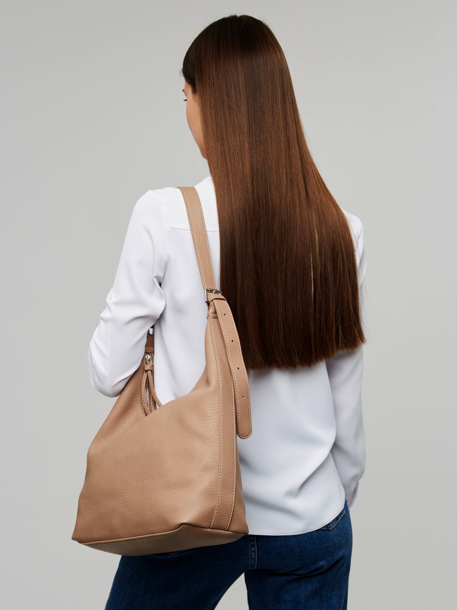 Большая женская сумка-хобо выполнена из качественной зернистой экокожи, которая имеет мягкую на ощупь фактуру. Габариты сумки на плечо - (ШхВхГ) 30х24х11 см. Сумка с широким ремнем легкая и универсальная, она без труда дополнит любой образ. Внутри вместительной сумки расположено одно главное отделение на текстильном подкладе, которое застегивается на надежную молнию. Также внутри сумки-шопера есть открытый карман и удобный карман на молнии. Плечевой ремень регулируется по длине до 70 см., поэтому сумку удобно носить на руке и на плечо. Уплотненное дно позволяет сумочке сохранять форму и устойчивость. Фурнитура выполнена в серебристом цвете.