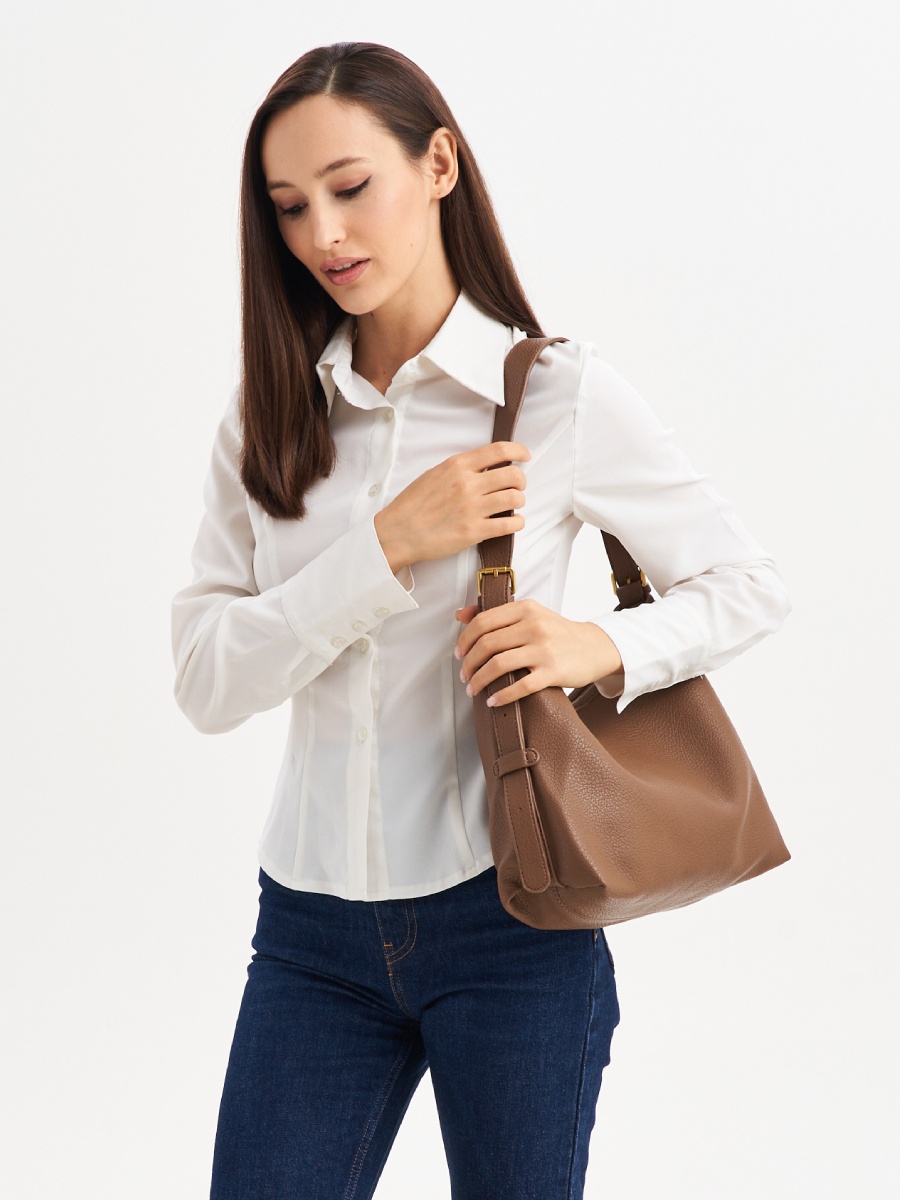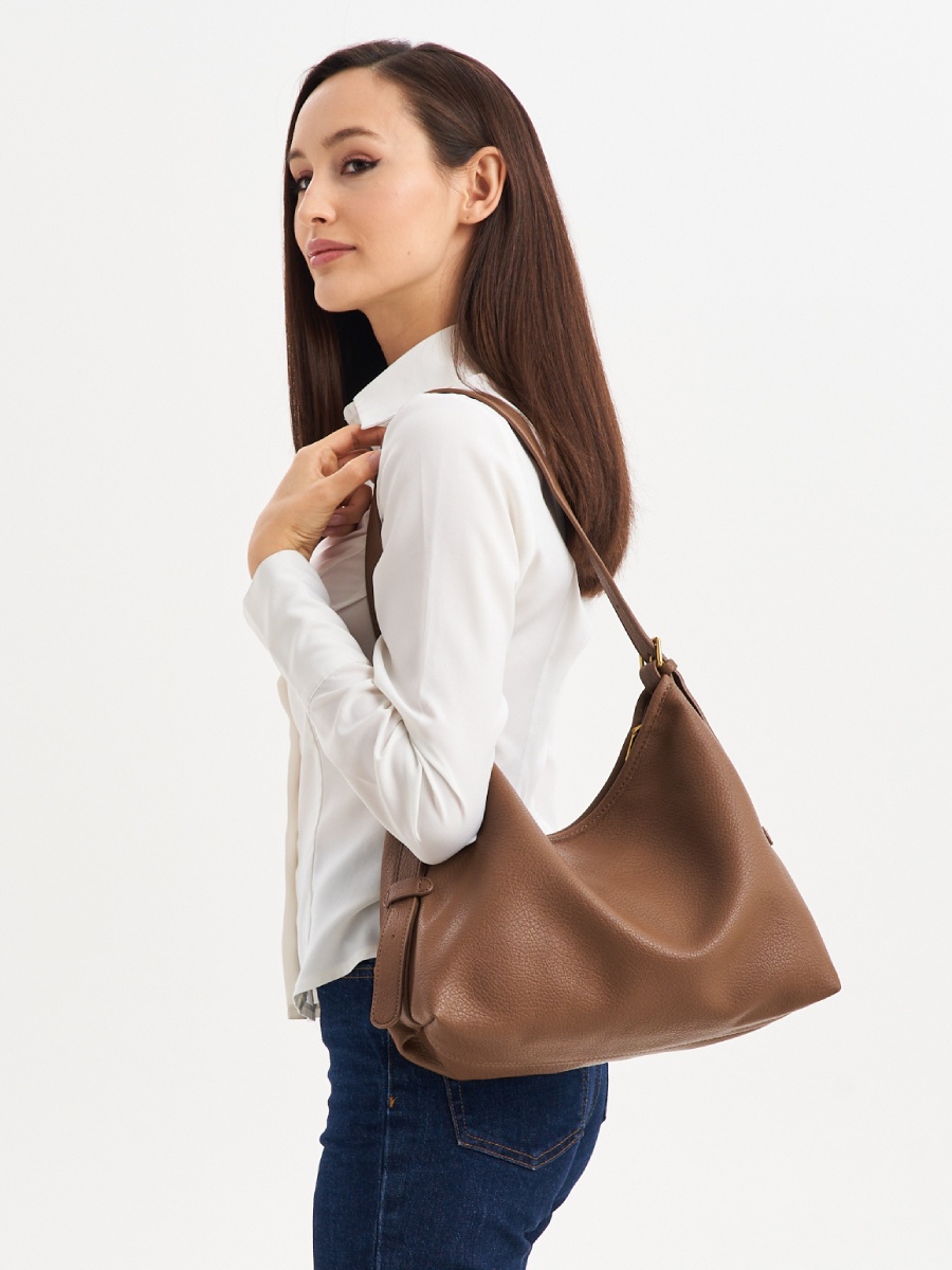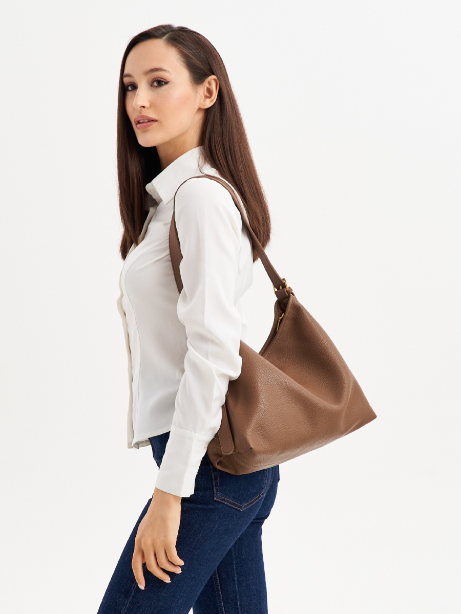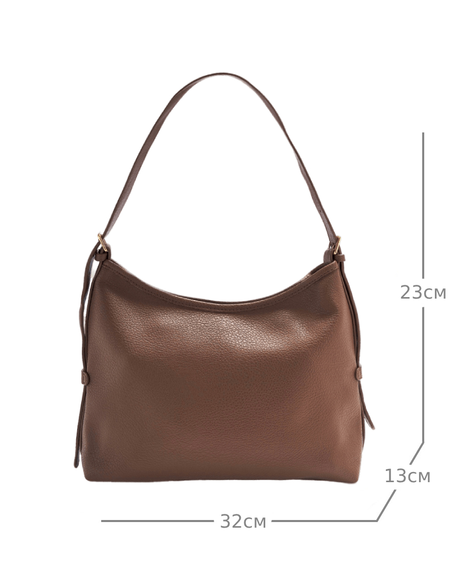 Женская сумка хобо изготовлена из качественной экокожи с зернистой фактурой. Сумка большая, размер шоппера – (ВхШхГ) 23х32х13 см., подходит для документов формат А4. Внутри модели находится одно вместительное отделение без подклада. Уплотненное дно позволяет сумочке сохранять форму и устойчивость. В комплект входит косметичка на молнии размером 27х15х7 см., выполненная из искусственной кожи и ремень, который регулируется по длине до 95 см. Сумка мешок застегивается на прочную молнию. Фурнитура выполнена из металла в золотистом цвете. Сумка классическая поставляется в текстильной (пыльник) и полиэтиленовой упаковке, что защищает ее от повреждений, а также позволяет удобно хранить женскую сумочку в дальнейшем использовании.