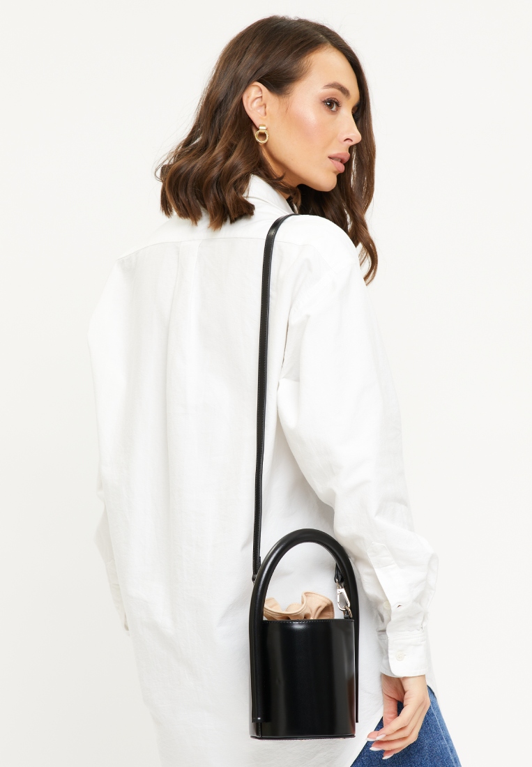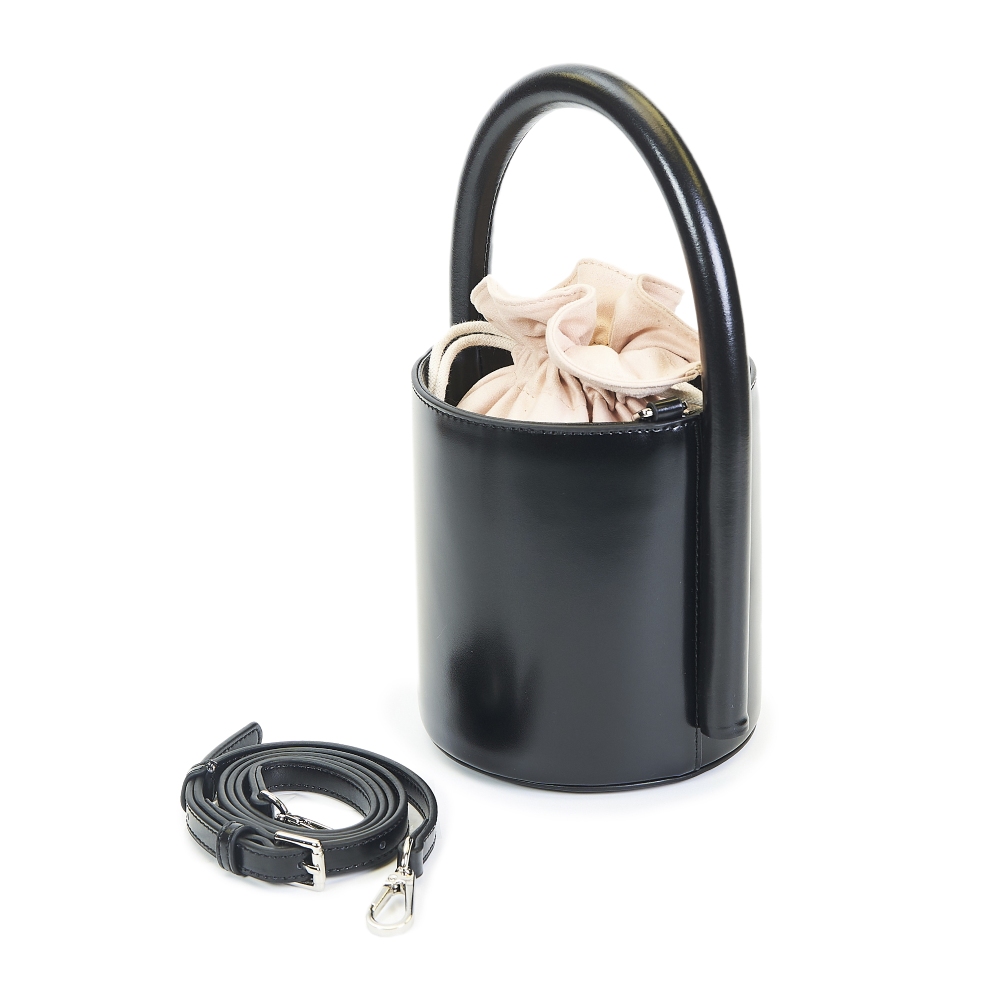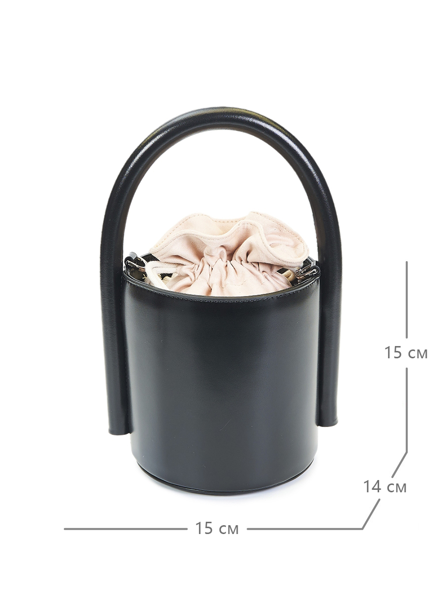 Женская сумка-ведро из натуральной гладкой кожи. К сумке прилагается вынимающийся текстильный кисет и плечевой ремень длиной 118 см. Сумка поставляется в текстильной и полиэтиленовой упаковке.