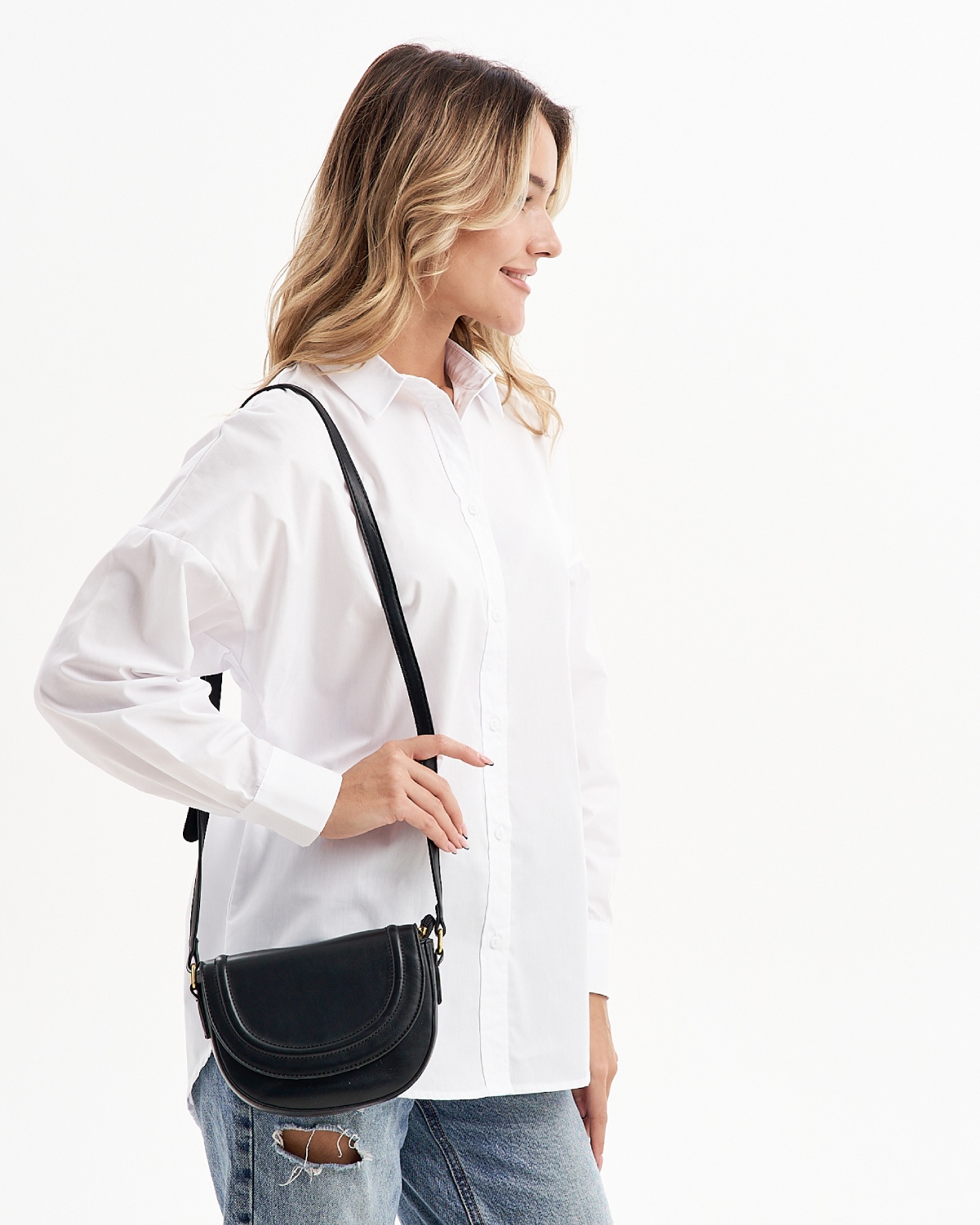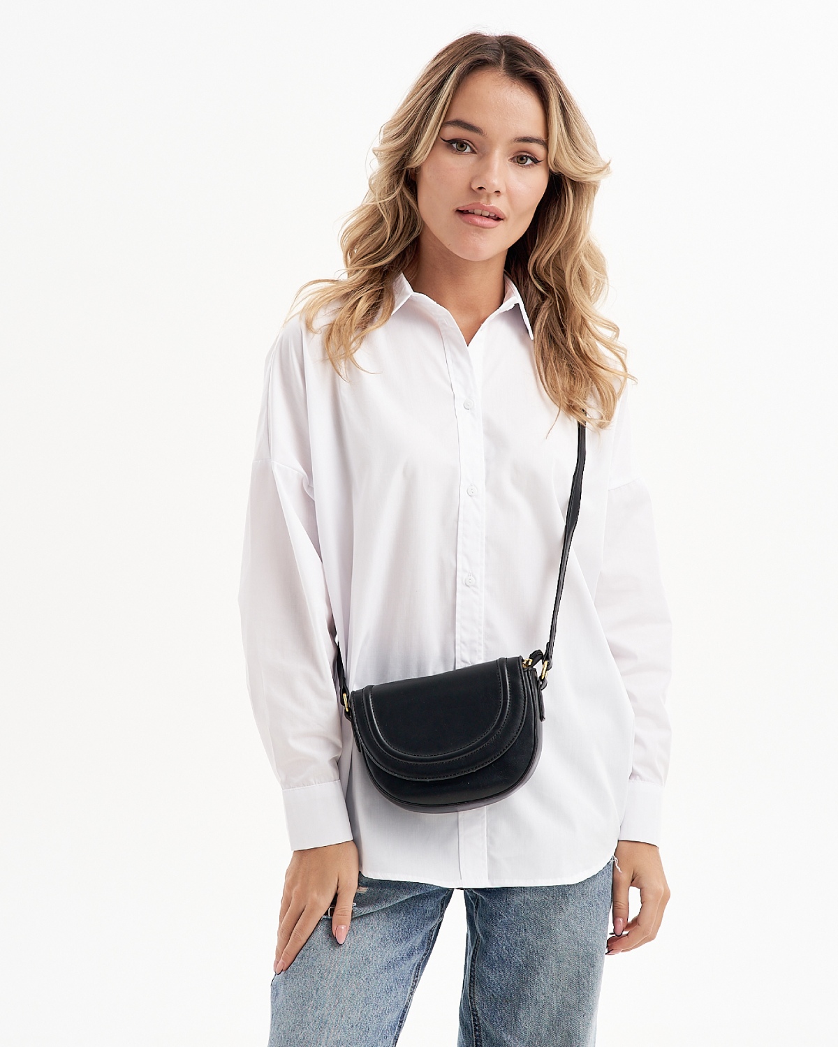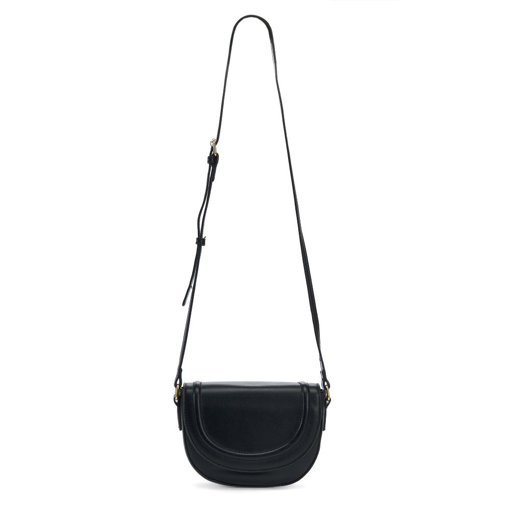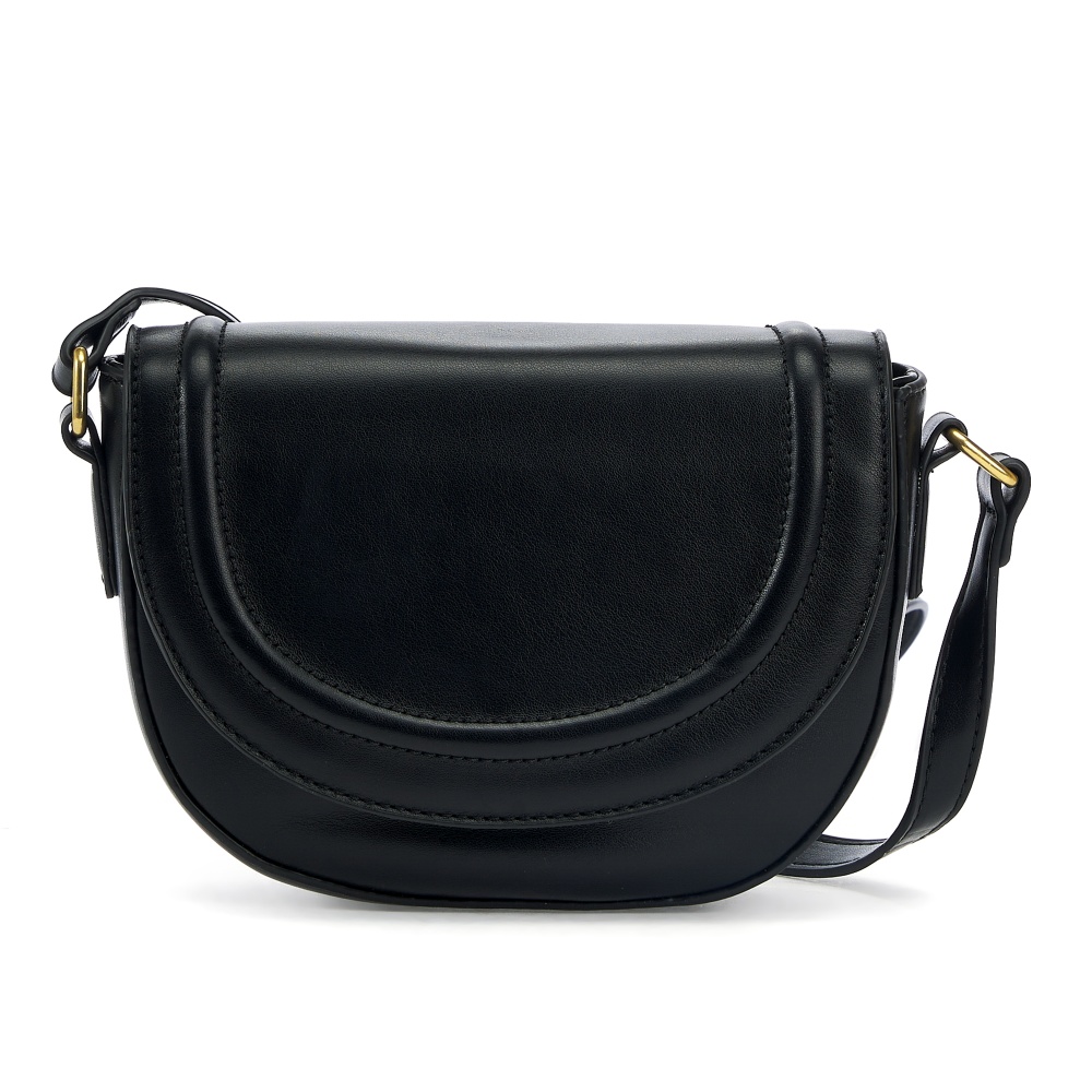 Женская сумка в форме седло выполнена из искусственной кожи, которая имеет мягкую и гладкую фактуру. Сумка небольшая с жестким каркасом. Габариты сумочки - (ВхШхГ) 15х17х6 см. Основное отделение кроссбоди на подкладе из плотного полиэстера закрывается на клапан с магнитом и надежную молнию. Внутри маленькой сумки один карман на молнии. Плечевой ремень несъемный и регулируется по длине до 115 см., поэтому сумку можно носить в руке, на плечо и через плечо как кроссбоди. Фурнитура выполнена из металла в золотистом цвете. Сумка с застежкой поставляется в текстильной (пыльник) и полиэтиленовой упаковке, что защищает ее от повреждений, а также позволяет удобно хранить женскую сумочку в дальнейшем использовании.