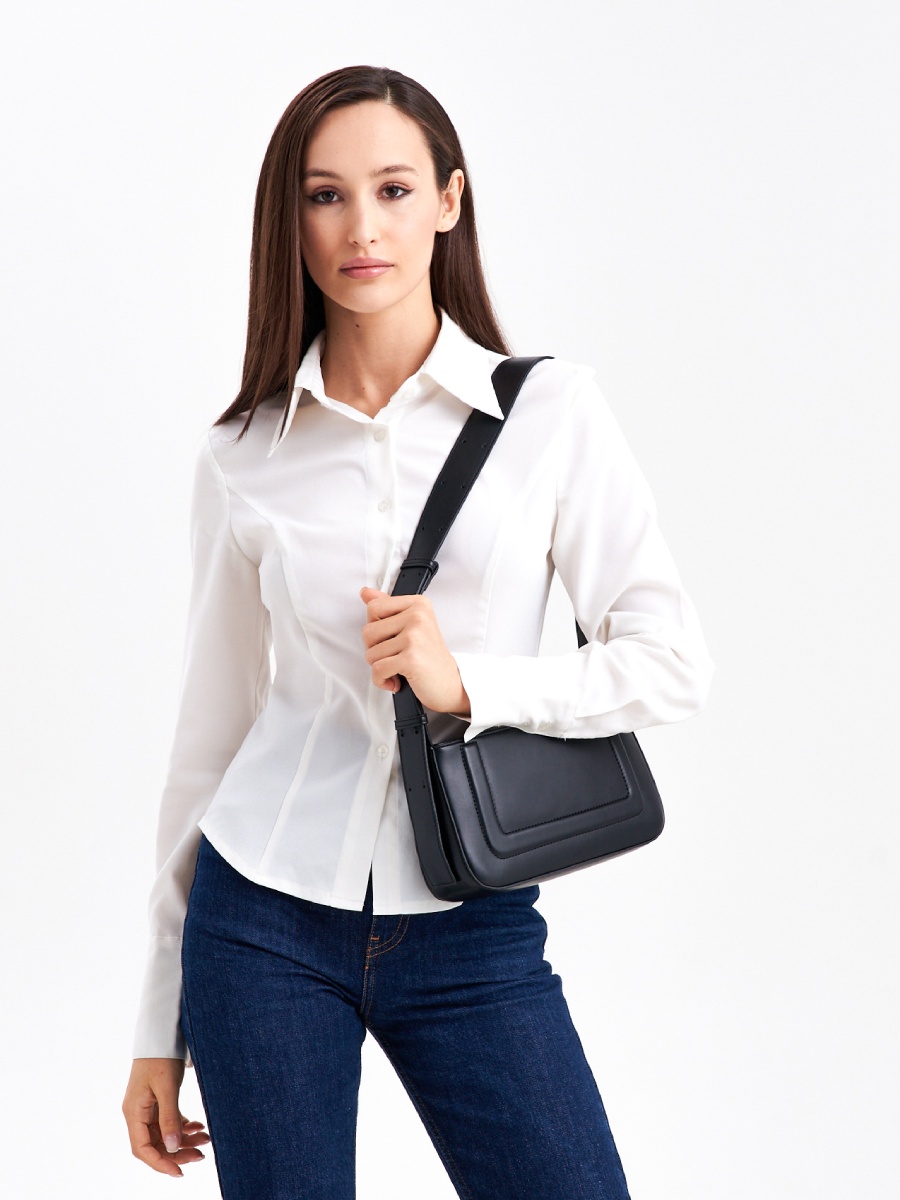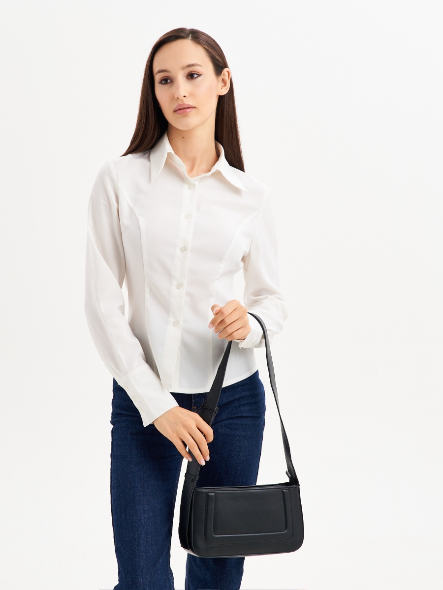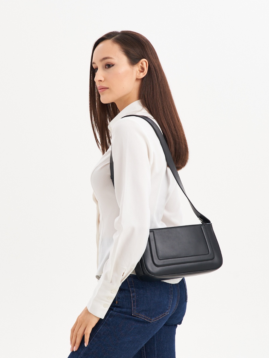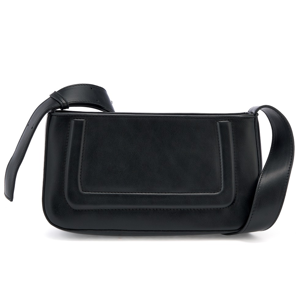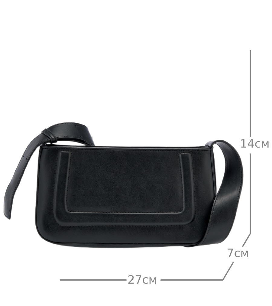 Женская сумка формы багет выполнена из искусственной кожи, которая имеет гладкую и приятную на ощупь фактуру. Сумка в жестком каркасе. Габариты сумочки - (ВхШхГ) 14х27х7 см. Основное отделение кроссбоди на подкладе из плотного полиэстера закрывается на надежную молнию. Внутри маленькой сумки один карман на молнии. Широкий плечевой ремень несъемный и регулируется по длине до 95 см., поэтому сумку можно носить в руке, на плечо и через плечо как кроссбоди. Фурнитура выполнена из металла в серебристом цвете. Сумка с застежкой поставляется в текстильной (пыльник) и полиэтиленовой упаковке, что защищает ее от повреждений, а также позволяет удобно хранить женскую сумочку в дальнейшем использовании.