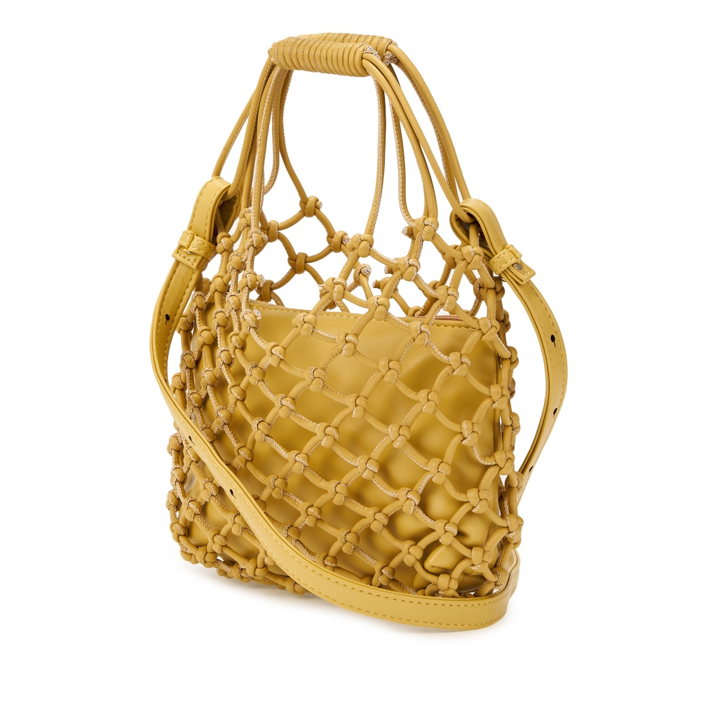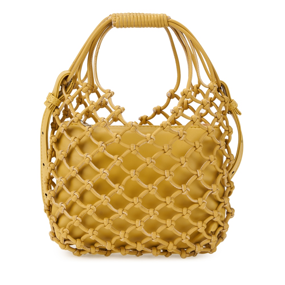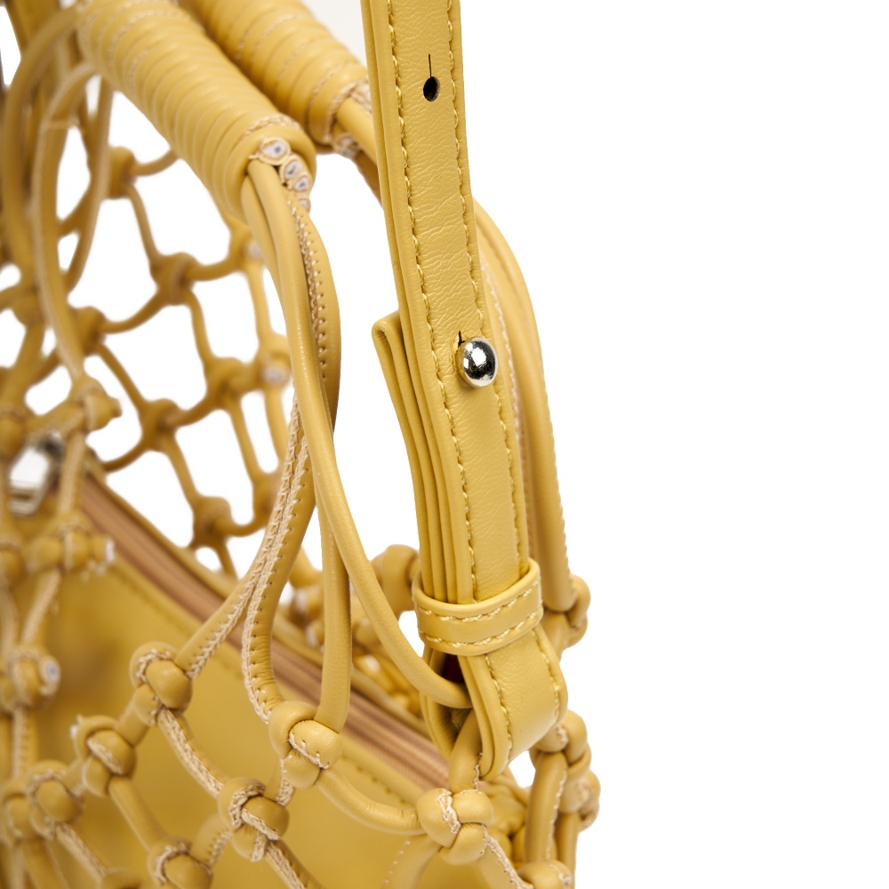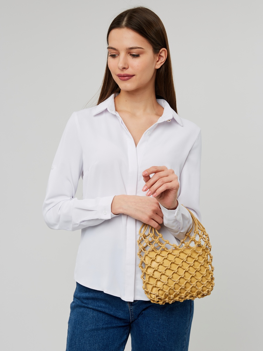 Женская сумка-авоська выполнена из гладкой искусственной кожи, которая обладает мягкой и приятной на ощупь фактурой. Габариты плетеной сумочки - (ШхВхГ) 22х17х3 см. Высота ручек кросс-боди - 11 см. Стильная форма и лаконичный дизайн - такая маленькая сумочка подчеркнет ваш неповторимый вкус. В комплект к сумке через плечо входит косметичка на молнии, выполненная из экокожи, которая помещается в основное отделение-сетку. Съемный плечевой ремень регулируется по длине до 105 см. и позволяет носить сумку на плечо и через плечо как кросс-боди. Фурнитура выполнена в серебристом цвете.