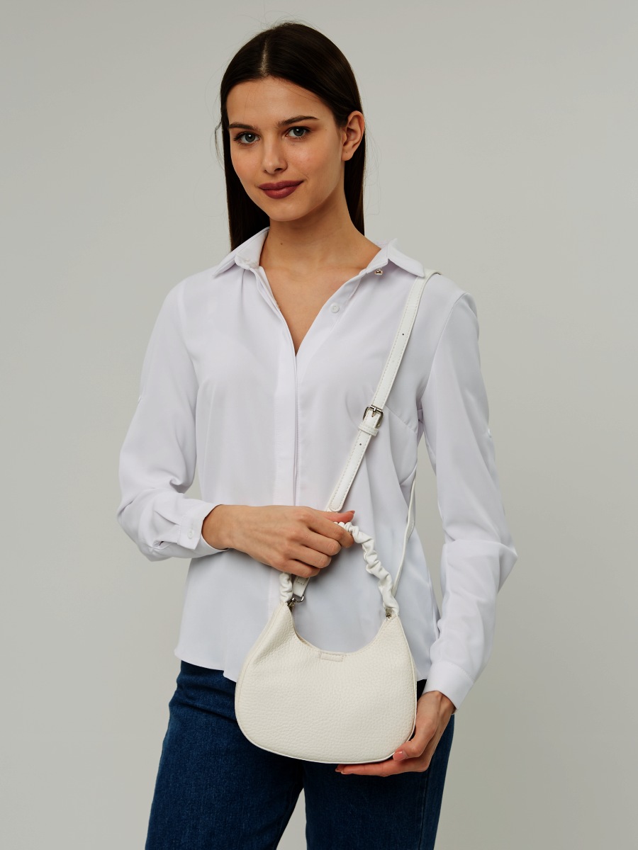 Женская сумка кросс-боди выполнена из мягкой качественной экокожи, которая обладает зернистой фактурой. Стильная форма и оригинальная присбореннее ручка – такая маленькая сумочка дополнит любой современный образ. Габариты сумки через плечо – (ШхВхГ) 22х13х6 см. Внутри модели находится одно основное отделение, которое закрывается на удобную магнитную кнопку. В комплект входит текстильная косметичка на молнии (15х7х5 см.). Съемный плечевой ремень, регулируется по длине до 105 см., поэтому сумку мини можно носить в руке, на плечо и через плечо как кросс-боди. Фурнитура выполнена в серебристом цвете.