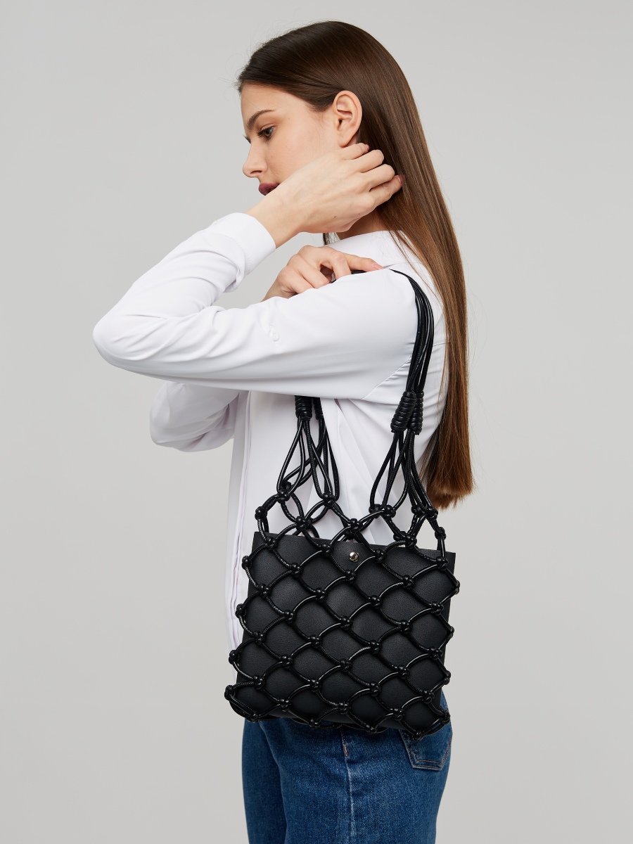 Женская сумка на плечо выполнена из качественной искусственной кожи, которая имеет гладкую на ощупь фактуру. Стильная форма авоськи и насыщенный оттенок – такая плетеная сумочка станет акцентом любого образа. Габариты сумки с двумя ручками – (ШхВхГ) 25х23х2 см. В комплекте есть съемное отделение, выполненное из экокожи, которое помещается в основное отделение-сетку и закрывается на магнитную кнопку. Высота ручек сумки-шопера - 30 см.