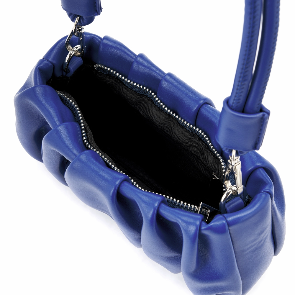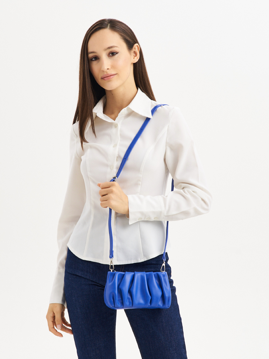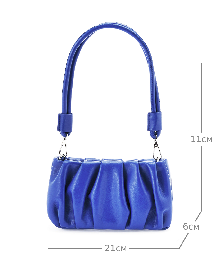 Маленькая плиссированная сумочка в форме багета из матовой экокожи станет отличным дополнением к вашему гардеробу! Мягкие складки придают сумочке праздничное предназначение. Габариты сумочки - (ВхШхГ) 11х21х6 см. Основное отделение кроссбоди на подкладе из плотного полиэстера закрывается на надежную молнию. Внутри маленькой сумки один карман на молнии. В комплекте прилагается два плечевых ремня: 50 см. и 120 см., поэтому сумку можно носить в руке, на плечо и через плечо как кроссбоди. Фурнитура выполнена из металла в серебристом цвете. Сумка с ручкой поставляется в текстильной (пыльник) и полиэтиленовой упаковке, что защищает ее от повреждений, а также позволяет удобно хранить женскую сумочку в дальнейшем использовании.