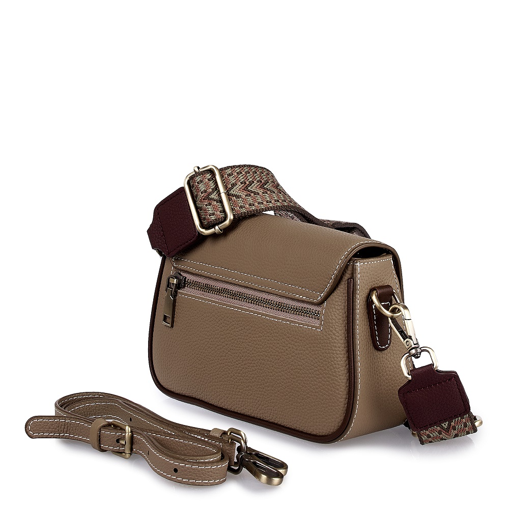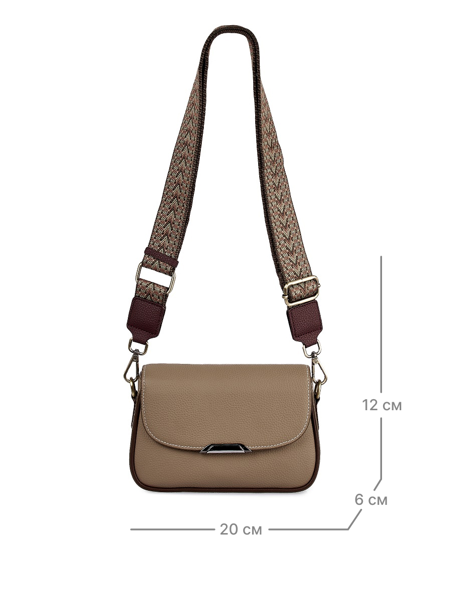Стильная женская сумка кросс-боди выполнена из натуральной зернистой кожи. Габариты сумки через плечо ( ВхШхГ) 12х20х6 см. Сумка через плечо с подкладом из полиэстера в мягком каркасе. В сумке расположены два основных отделения , внутри которых два кармана на молнии и открытый карман. Снаружи на обратной стороне сумки карман на молнии. Сумка легкая и вместительная, чтобы самые нужные вещи всегда были под рукой. В комплекте два плечевых ремня: кожаный плечевой ремень регулируется по длине от 95 до 118 см, и текстильный ремень от 84 до 140 см. Фурнитура выполнена из металла под светлое золото. Сумка поставляется в текстильной (пыльник) и полиэтиленовой упаковке, что защищает ее от повреждений, а также позволяет удобно хранить женскую сумочку в дальнейшем использовании.
