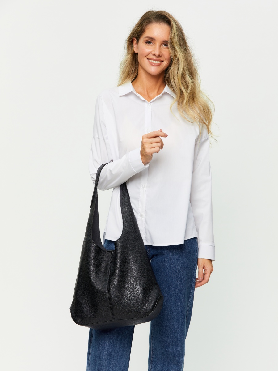 Женская сумка-хобо с высокой ручкой изготовлена из качественной экокожи с зернистой фактурой. Мягкая форма и насыщенный оттенок – такая универсальная легкая сумка на плечо дополнит любой образ. Сумка большая, размер шоппера – (ШхВхГ) 35х27х10 см. Внутри модели находится одно вместительное отделение без подклада. В комплект входит косметичка на молнии размером 22х15х7 см., выполненная из искусственной кожи. Сумка-мешок застегивается на прочную магнитную кнопку. Уплотненное дно позволяет сумочке сохранять форму и устойчивость. Фурнитура выполнена в серебристом цвете.