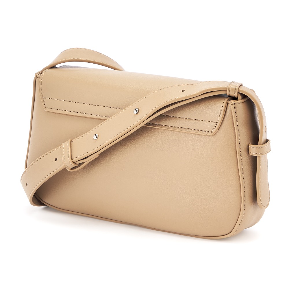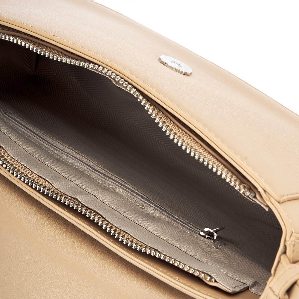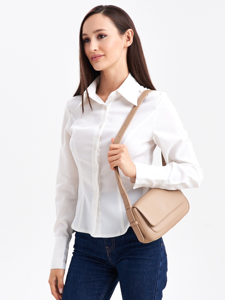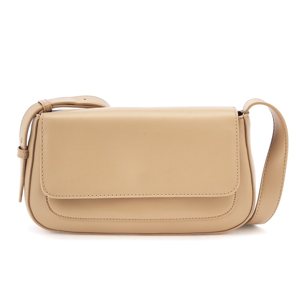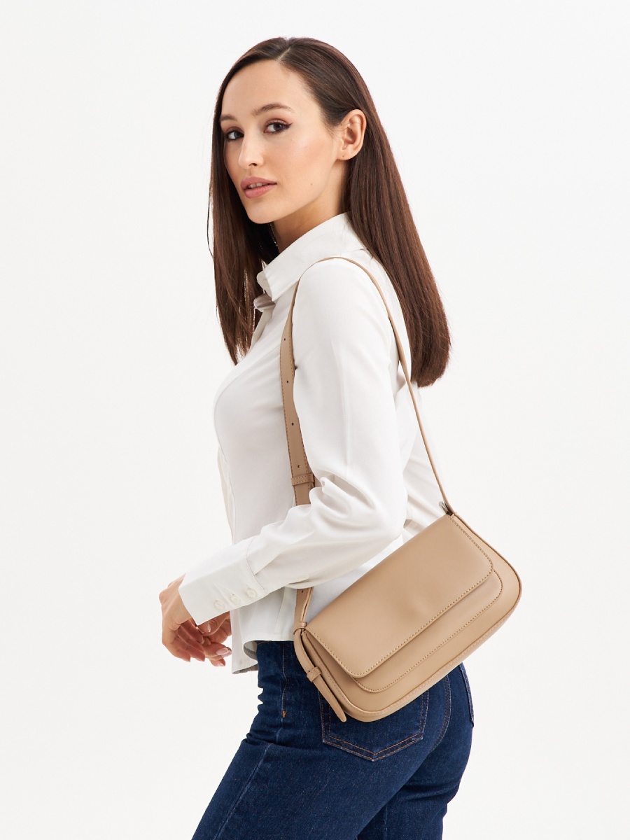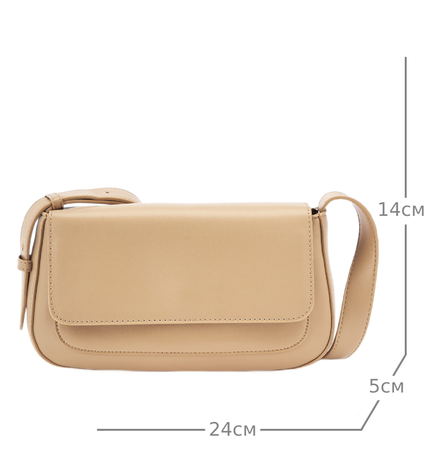 Женская сумка-багет выполнена из искусственной матовой кожи. Стильная аккуратная форма и оригинальный дизайн - такая удобная маленькая сумочка подчеркнет ваш неповторимый вкус. Габариты кросс-боди – (ВхШхГ) 14х24х5 см. Основное отделение сумки через плечо на подкладе из плотного полиэстера закрывается на клапан с магнитным замком и надежную молнию. Несъемный плечевой ремень регулируется по длине до 105 см., поэтому сумку удобно носить на плече и через плечо как кросс-боди. Жесткий каркас позволяет сумочке сохранять форму и устойчивость. Фурнитура выполнена из металла в серебристом цвете. Сумка с застежкой поставляется в текстильной (пыльник) и полиэтиленовой упаковке, что защищает ее от повреждений, а также позволяет удобно хранить женскую сумочку в дальнейшем использовании.