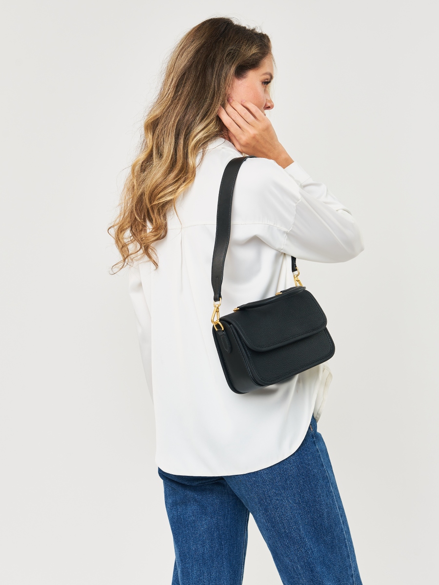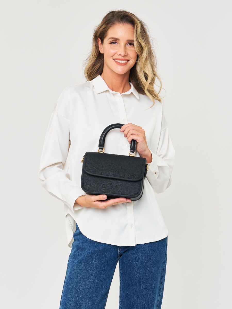Женская сумка-сэтчел из натуральной зернистой кожи. Габариты - 21х14х9 см. Под клапаном на застежке располагаются 3 вместительных отделения с подкладом из плотного полиэстера, открытый карман и карман на молнии. На внешней задней стенке дополнительный карман на магнитной кнопке. В комплекте 2 съемных плечевых ремня: короткий широкий (67 см.) и узкий длинный (125 см.) Фурнитура выполнена в цвете античного золота. Сумка поставляется в текстильной и полиэтиленовой упаковке.